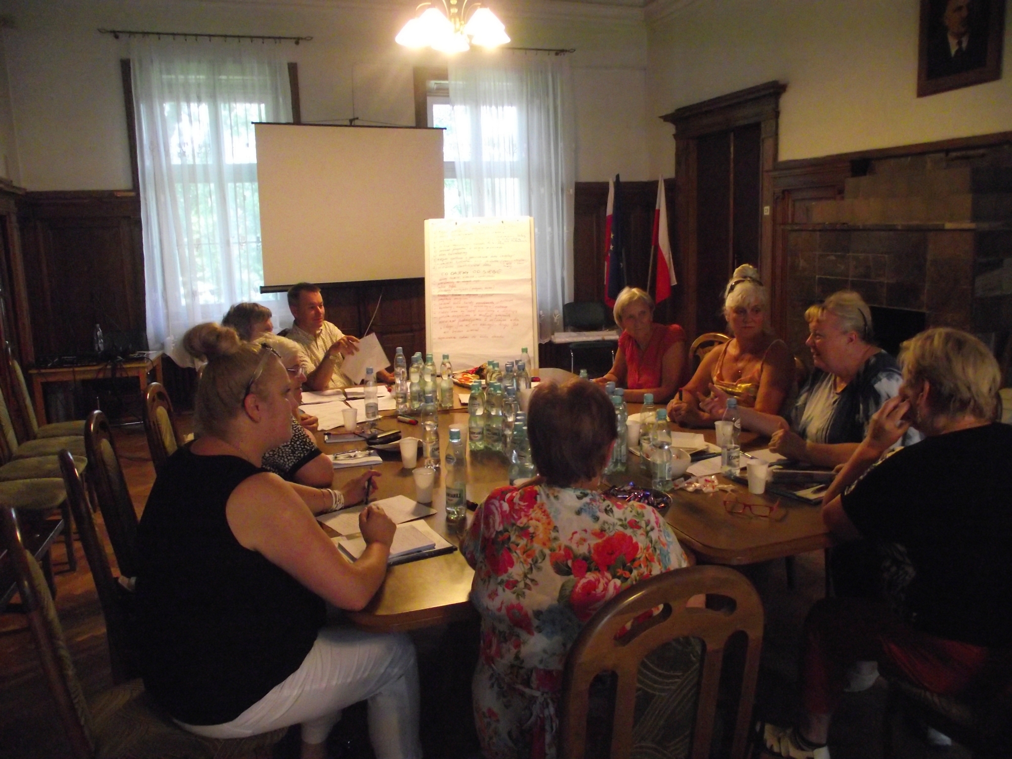 Na przełomie lipca i sierpnia uczestnicy projektu wzięli udział w trzydniowych warsztatach podnoszących wiedzę i umiejętności w zakresie metod pracy z dziećmi. Zajęcia każdego dnia obejmowały inny moduł. Pierwszego dnia seniorki skupiły się na poznaniu oczekiwań dzieci z podziałem na te w wieku do trzech i do sześciu lat. Podczas warsztatów Panie pracowały nad określeniem potrzeb i zachowań dzieci właściwych dla tego okresu rozwoju, starając się je jak najlepiej zrozumieć i zinterpretować . W kolejnym dniu seniorki poznawały metody pracy z dziećmi ze szczególnym uwzględnieniem zabaw, jakie można przeprowadzić z najmłodszymi. Jak wiadomo, wiedza najlepiej sprawdza się w praktyce, zatem nasze seniorki wpadły w wir zabawy i same z zapałem rozegrały kilka gier planszowych, recytowały wierszyki, śpiewały piosenki i rymowanki, a także zaprezentowały gry znane z czasów ich młodości. Wiele z tych gier i piosenek znanych jest obecnie dzieciom, ale sporo z nich należałoby ocalić od zapomnienia i przekazać najmłodszym. Z takim przesłaniem zakończył się drugi dzień pracy. Ostatni dzień spotkań dotyczył określenia współpracy seniorów z danym typem organizacji działającej na rzecz małych dzieci na terenie gminy Jastków. Kolejnym etapem projektu było spotkanie z doradcą personalnym, który wydobył najmocniejsze strony każdej z Pań oraz pomagał w podjęciu decyzji odnośnie tematyki planowanych warsztatów z najmłodszymi.