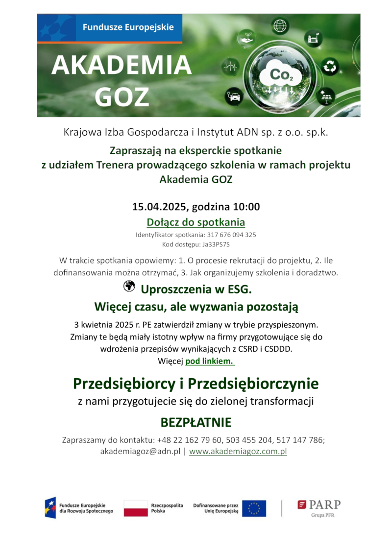 EKSPERCKIE SPOTKANIE Z UDZIAŁEM TRENERA PROWADZĄCEGO SZKOLENIA W RAMACH PROJEKTU AKADEMIA GOZ