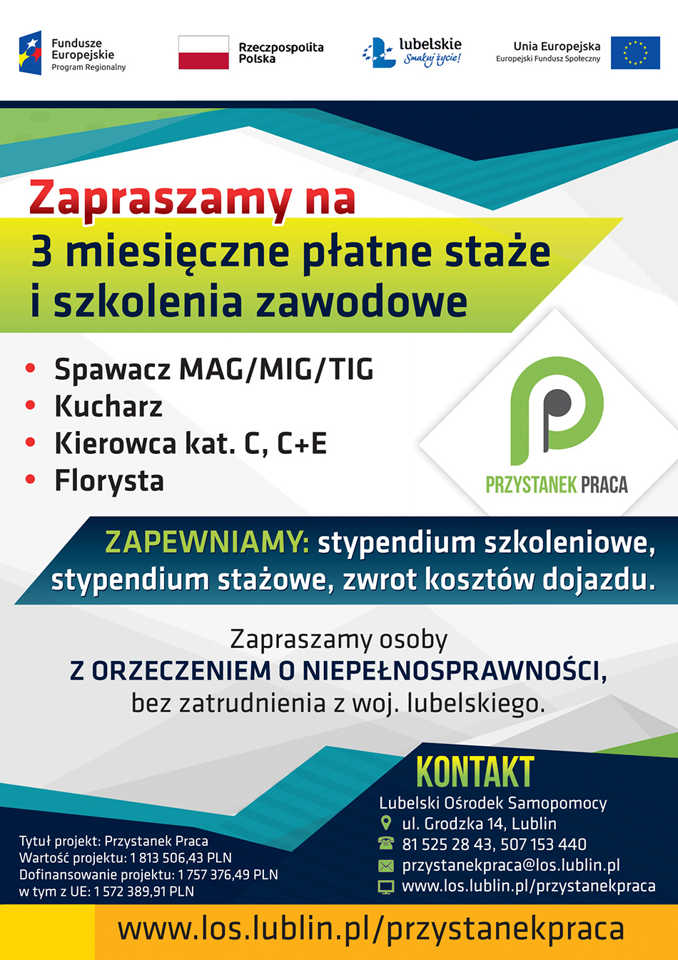 Zapraszamy na 3 miesięczne płatne staże i szkolenia zawodowe dla spawaczy MAG/MIG/TIG, kucharzy, kierowców C, C+E, florystów.