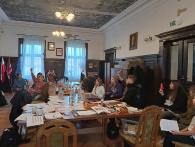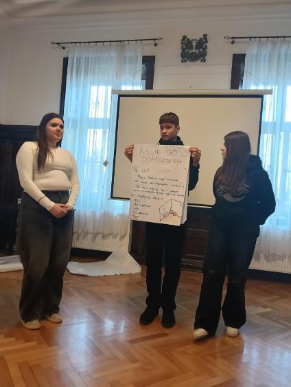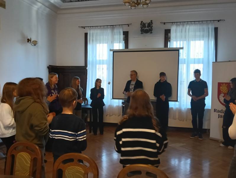 Uczniowie dowiedzieli się jakie są kompetencje Samorządu Uczniowskiego oraz Młodzieżowych Rad Gminy a także jakie możliwości współpracy z samorządem i społecznością lokalną oraz jakie możliwości pozyskania źródeł dofinansowania działań i pomysłów młodzieży.