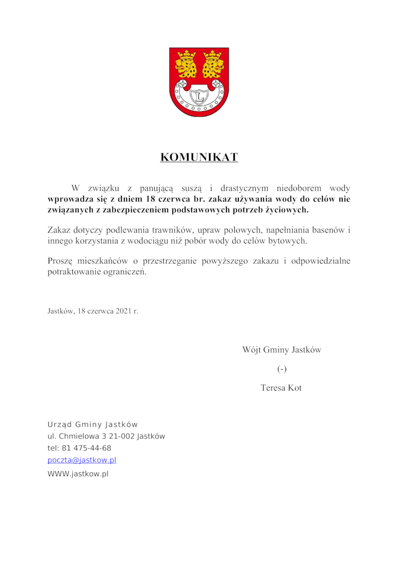 APEL O OGRANICZENIE ZUŻYCIA WODY