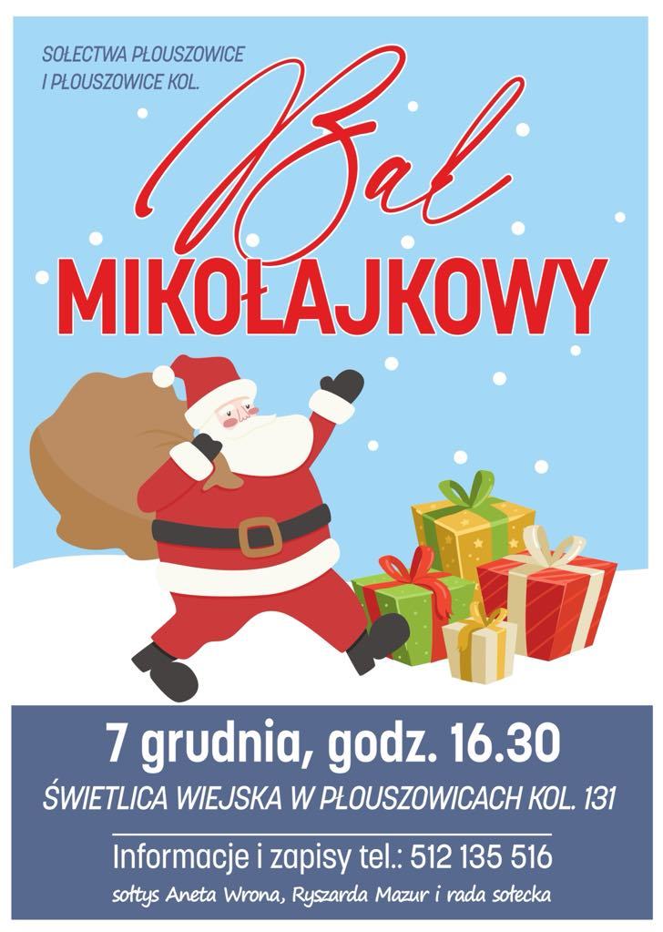 Zapraszamy na Bal Mikołajkowy, który odbędzie się 7 grudnia o godzinie 16:30 w Świetlicy w Płouszowicach Kolonii 131.