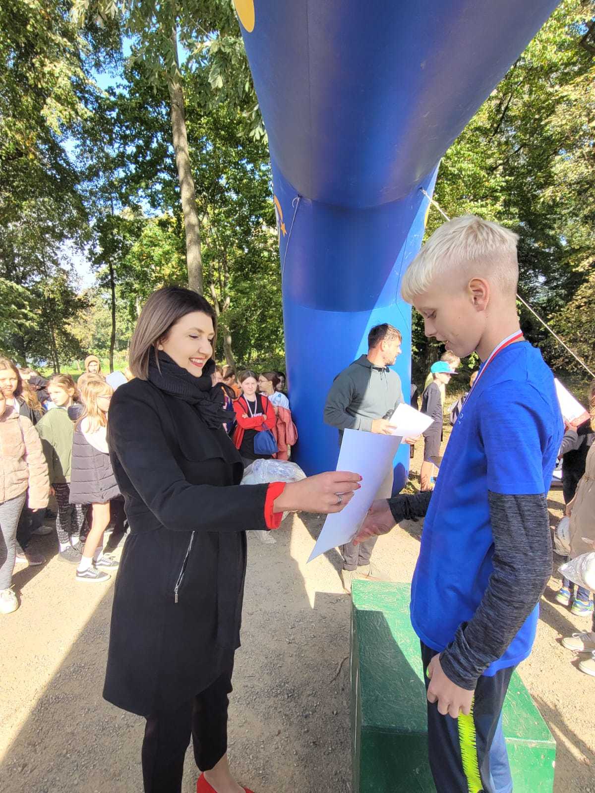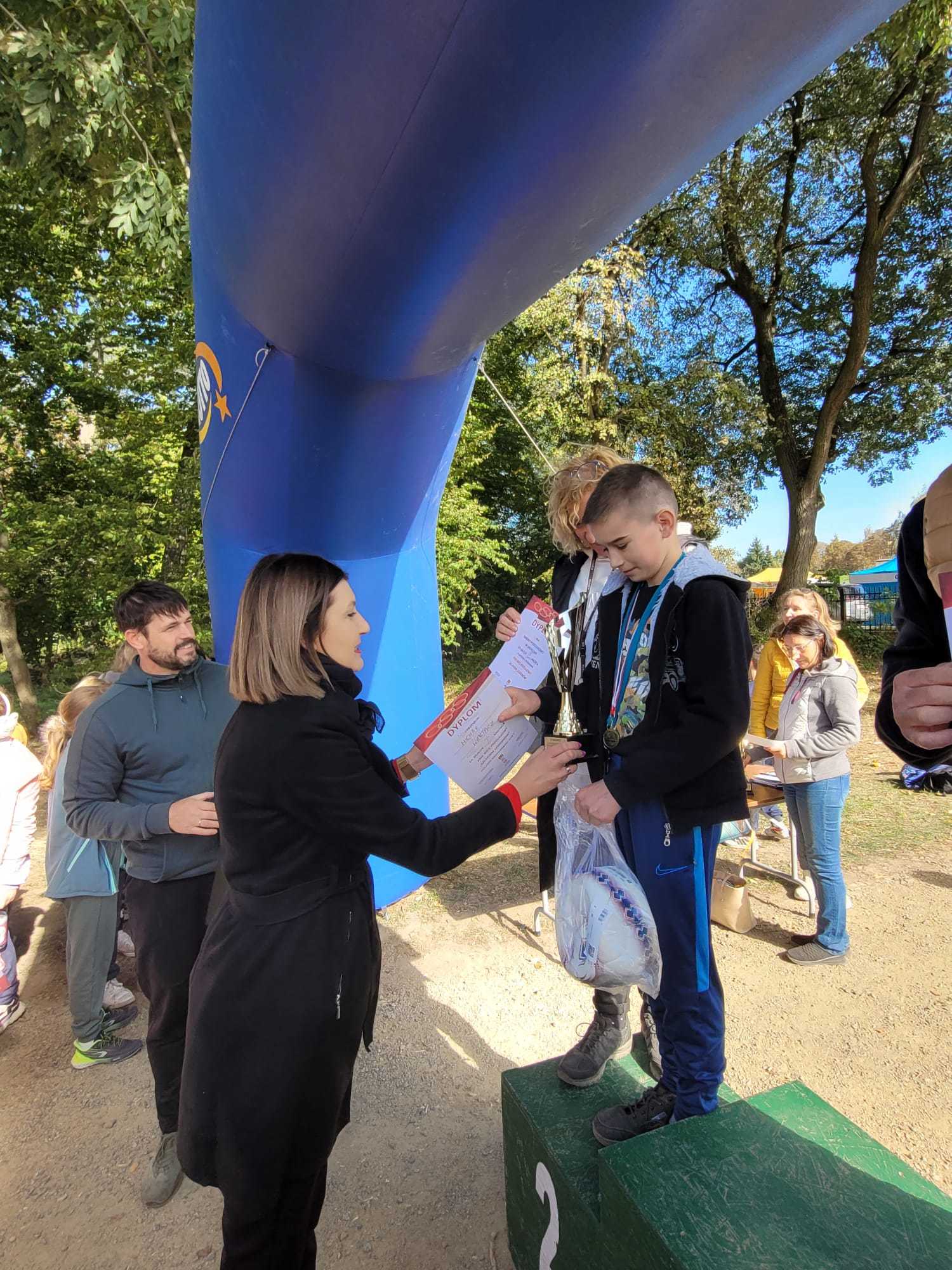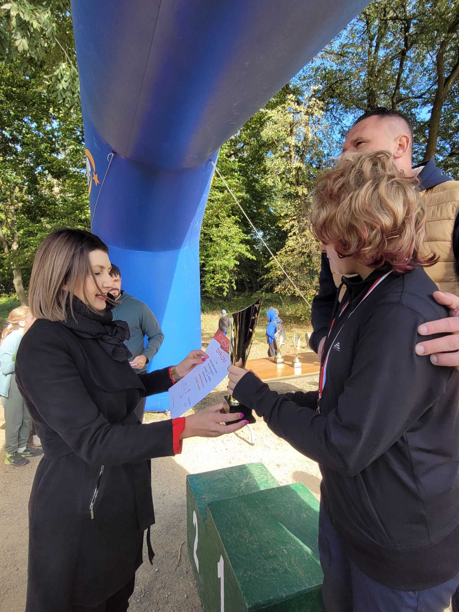 Po zakończeniu biegów, Zastępca Wójta - Emilia Białek-Paluch oraz Dyrektor GOKiS - Kamil Ziółkowski wręczyli zwycięzcom puchary, nagrody i dyplomy, gratulując im osiągniętych wyników.