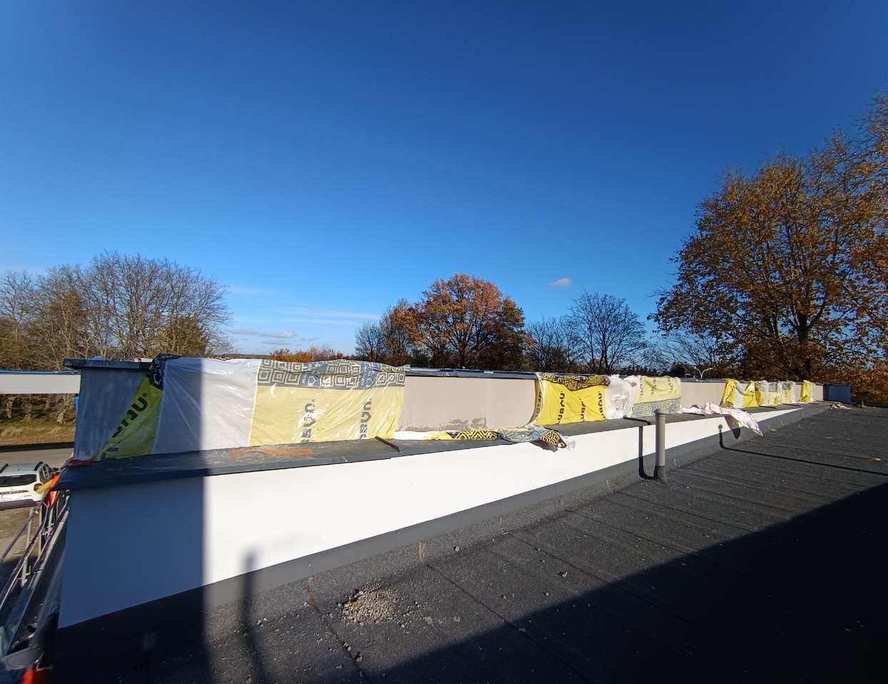 Zakończono również montaż wszystkich obróbek blacharskich na dachu oraz stolarki okiennej. W najbliższych dniach planowane jest wykonanie posadzek, po czym rozpoczną się prace wykończeniowe.