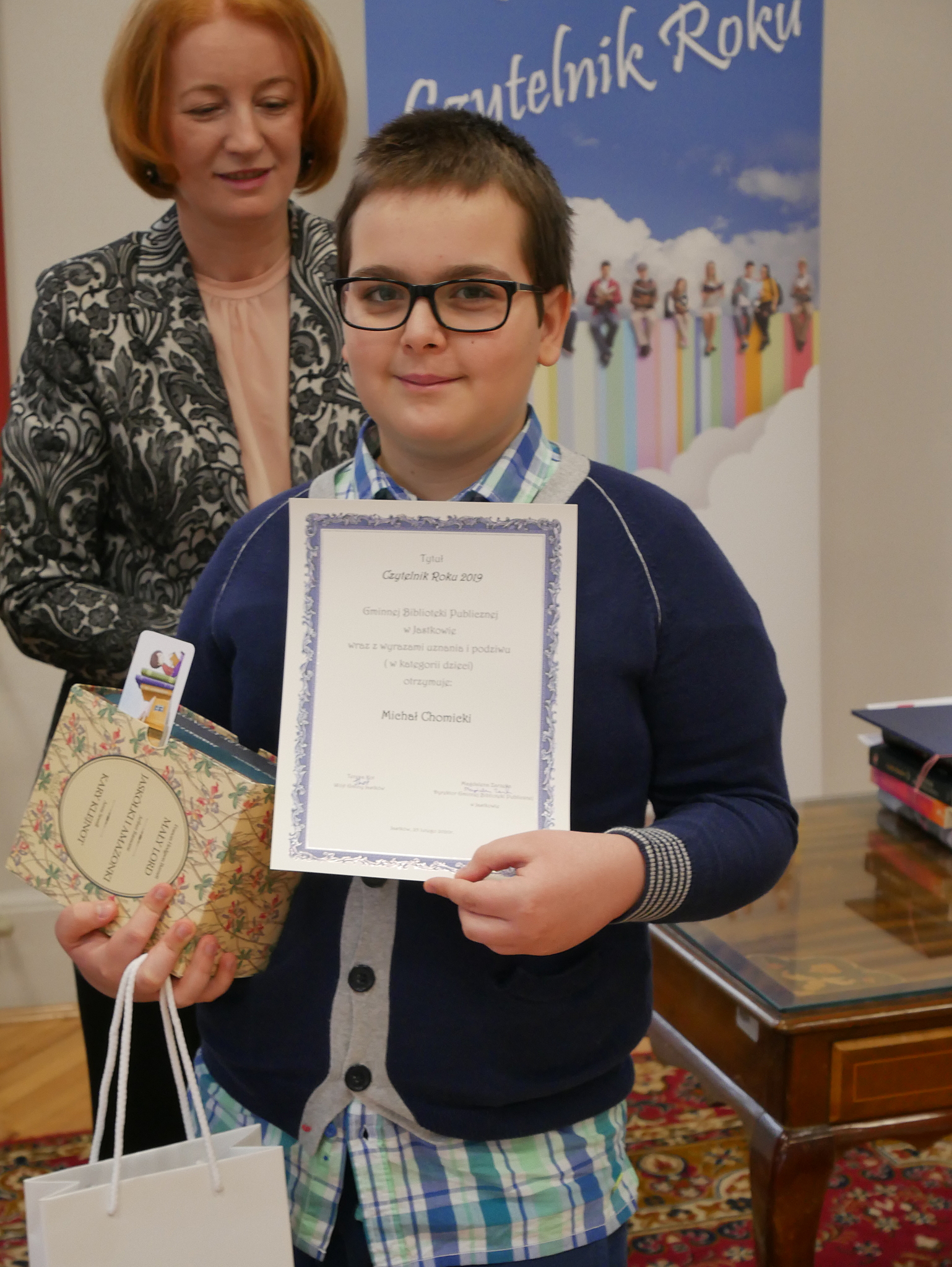 Czytelnikiem Roku 2019 w kategorii dzieci i młodzież został Michał Chomicki (GBP Jastków).