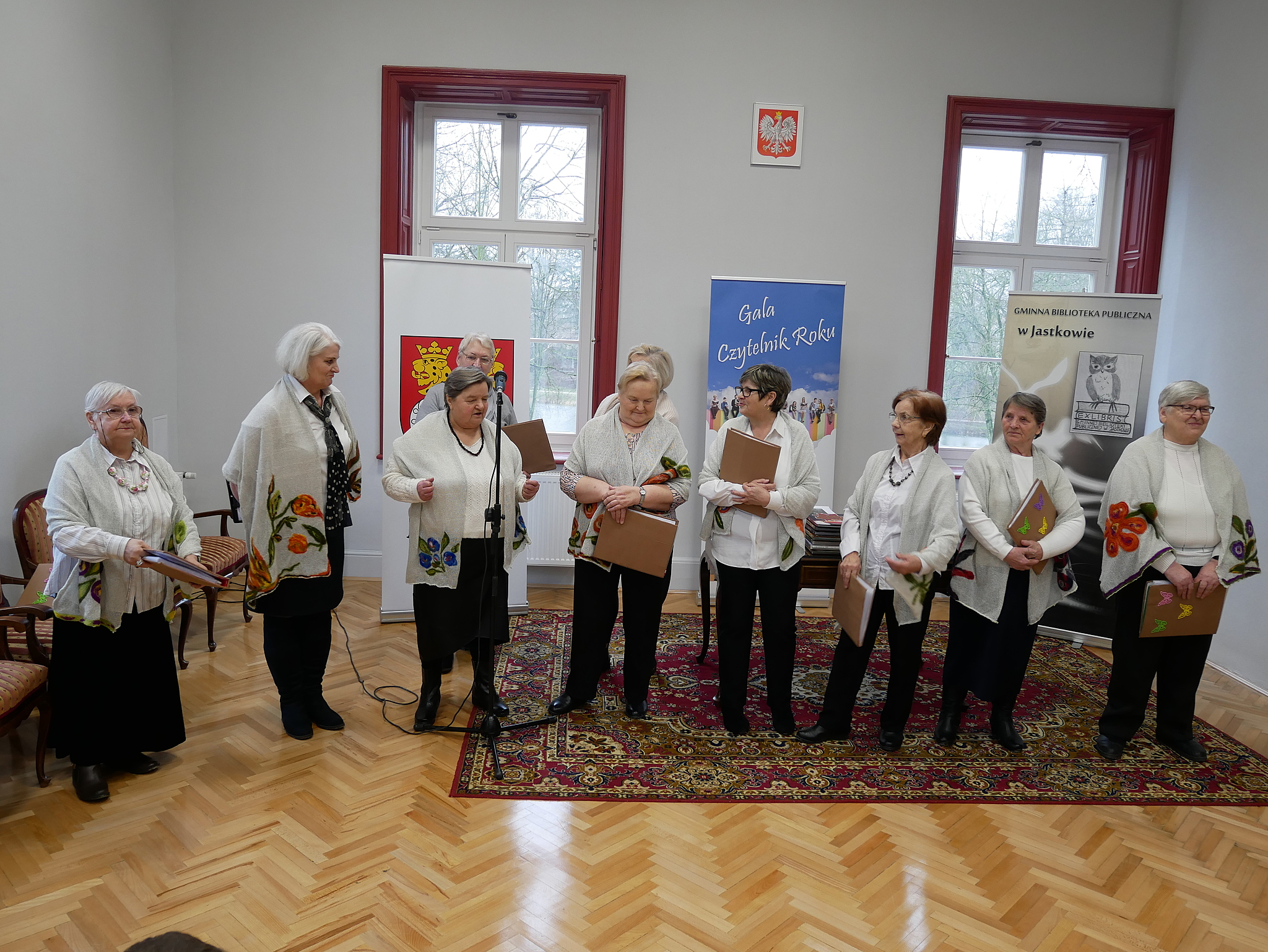 Uroczystość uprzyjemniły panie z Klubu Seniora w Jastkowie, które przytoczyły wiele ciekawostek dotyczących książek a także recytowały wiersze i śpiewały piosenki. Paniom akompaniował Daniel Mazurek.