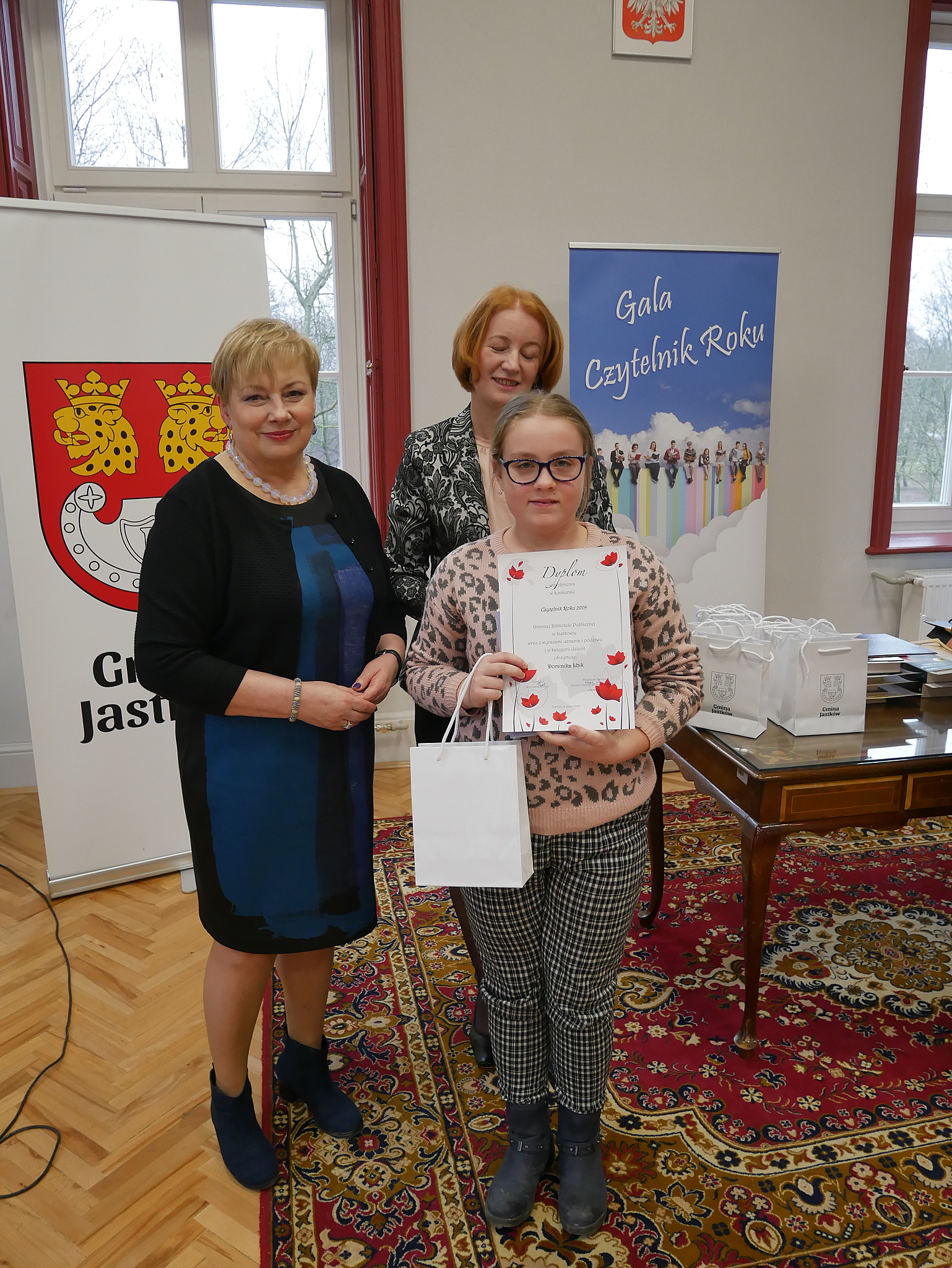 25 lutego miała miejsce niezwykła uroczystość – rozstrzygnięcie konkursu „Czytelnik Roku 2019”, który ogłoszony został pod honorowym patronatem Wójta Gminy Jastków. W pięknie odnowionej sali pałacowej urzędu gminy wręczone zostały nagrody i wyróżnienia dla najlepszych czytelników w gminie Jastków. Wśród przybyłych gości była obecna gospodyni miejsca Teresa Kot - Wójt Gminy Jastków, Barbara Czubak - Kierownik Referatu ds. Edukacji, Kultury i Sportu, Spraw Społecznych; Ulesława Lubek - Radna Gminy Jastków, Przewodnicząca Komisji Edukacji i Spraw Społecznych; Andrzej Krak – Sekretarz Gminy Jastków, Magdalena Kędra – Dyrektor Powiatowej Biblioteki Publicznej w Lublinie, Anna Krzyżanowska - Dyrektor Szkoły Podstawowej im. Józefa Piłsudskiego w Jastkowie; Kamil Ziółkowski – Dyrektor Gminnego Ośrodka Kultury i Sportu w Jastkowie, Teresa Zawiślak – Kierownik Klubu Seniora w Jastkowie.