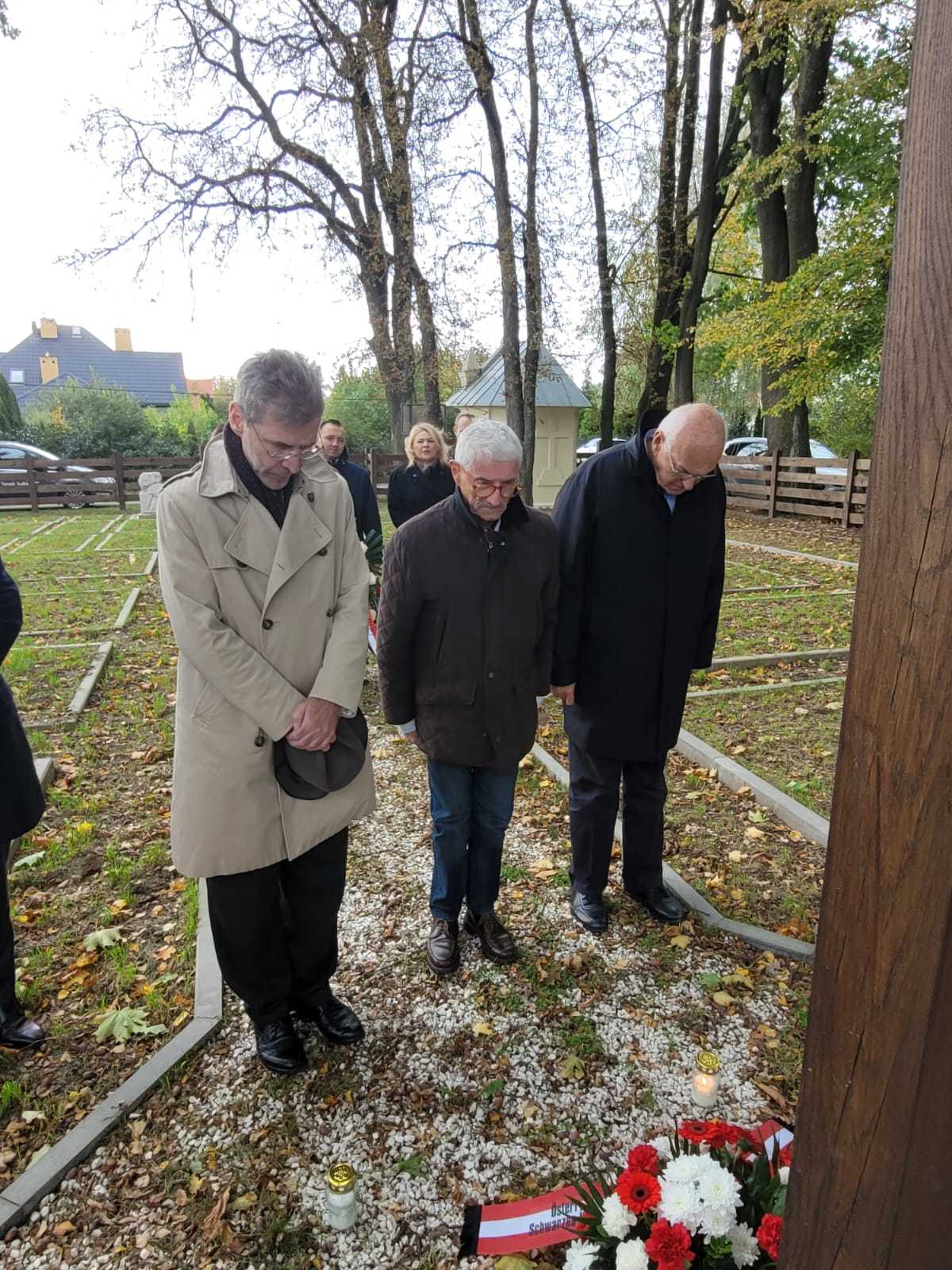 Wspólnie z delegacją złożyliśmy kwiaty na cmentarzu wojennym z okresu I wojny światowej w Marysinie. Cmentarz ten, będący miejscem spoczynku wielu żołnierzy z tego okresu, został przed kilkoma laty zrewitalizowany przy wsparciu i udziale finansowym Austriackiego Czarnego Krzyża.