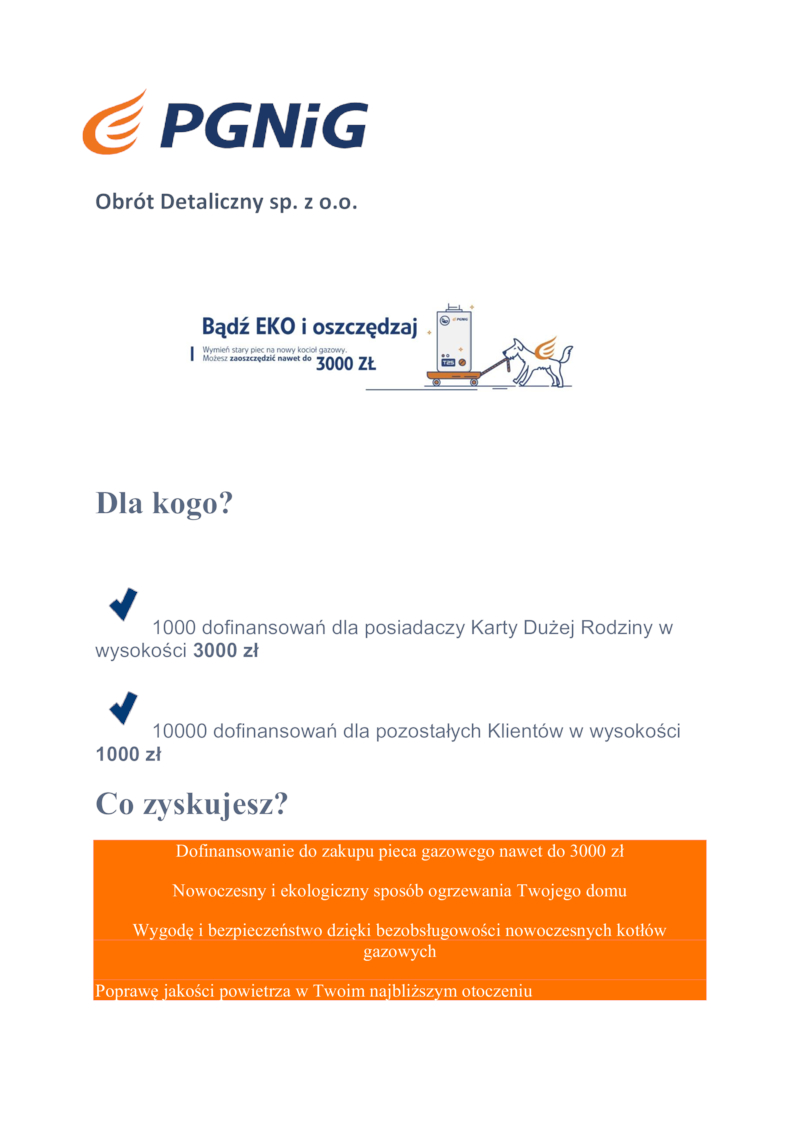 PGNiG Obrót Detaliczny Sp. z o.o. dofinansuje wymianę pieca na gazowy.