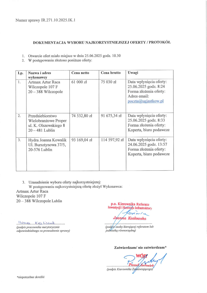 DOKUMENTACJA WYBORU NAJKORZYSTNIEJSZEJ OFERTY