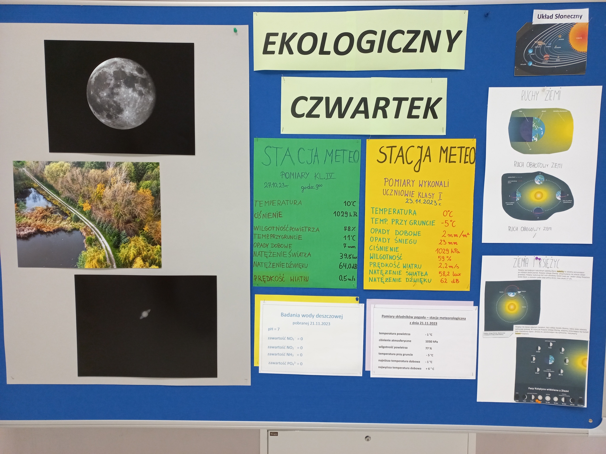 30 listopada w Szkole Podstawowej im. Józefa Ignacego Kraszewskiego w Snopkowie odbył się kolejny „Ekologiczny czwartek”. To dzień podsumowania tego, co w ciągu miesiąca działo się w szkole w ramach realizacji programu „Ekopracownia – zielone serce szkoły”. Na tablicach prezentowane są wyniki pomiarów, zdjęcia, plakaty. Uczniowie mają też możliwość obejrzenia materiału filmowego na temat działań, takich jak praca kółek przyrodniczych i koła medialnego, pomiary prowadzone podczas zajęć lekcyjnych czy warsztaty astronomiczne „Niebo nad Snopkowem”.