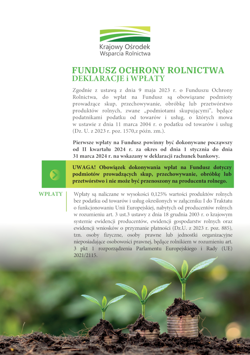 FUNDUSZ OCHRONY ROLNICTWA -DEKLARACJE I WPŁATY