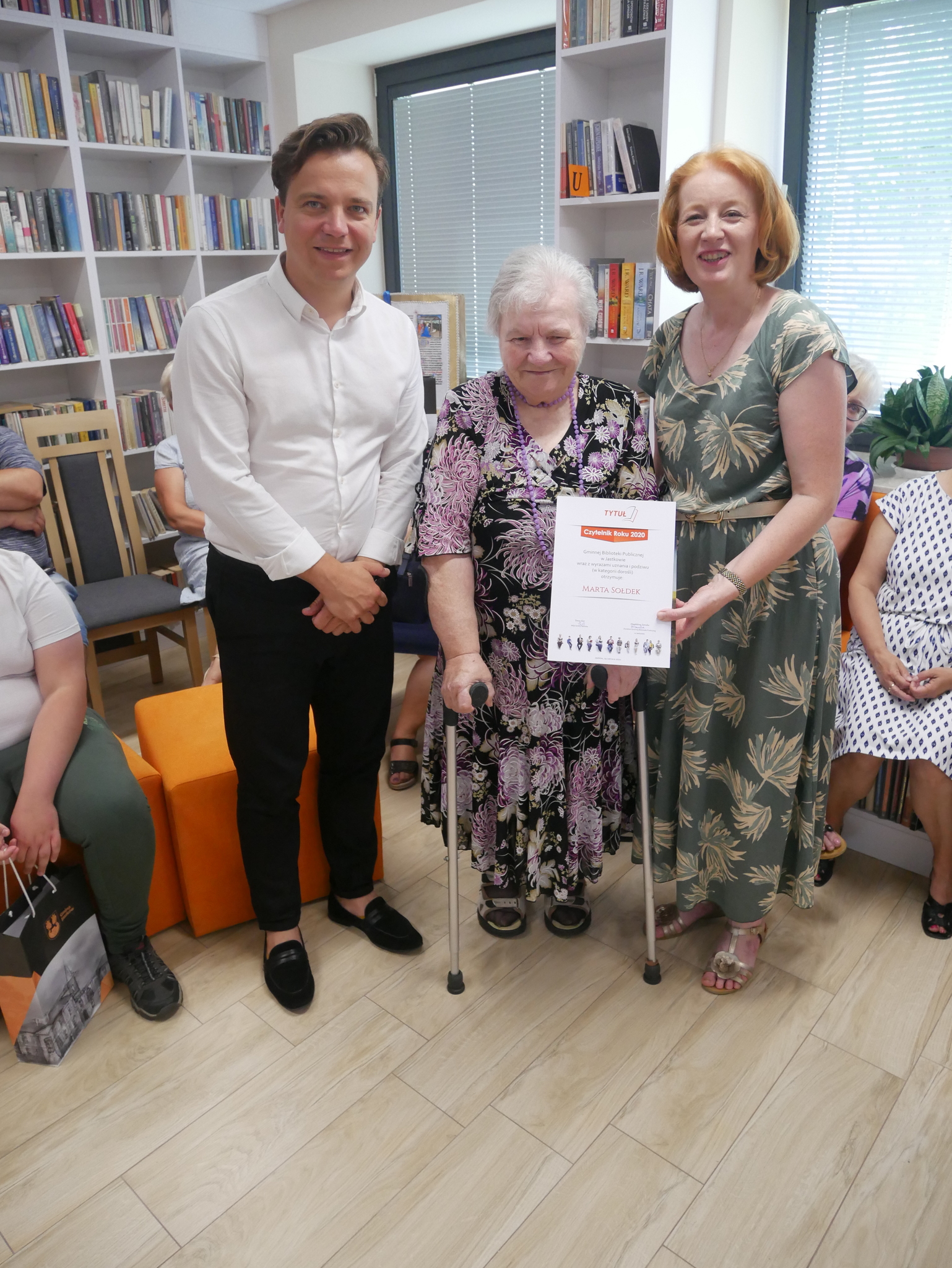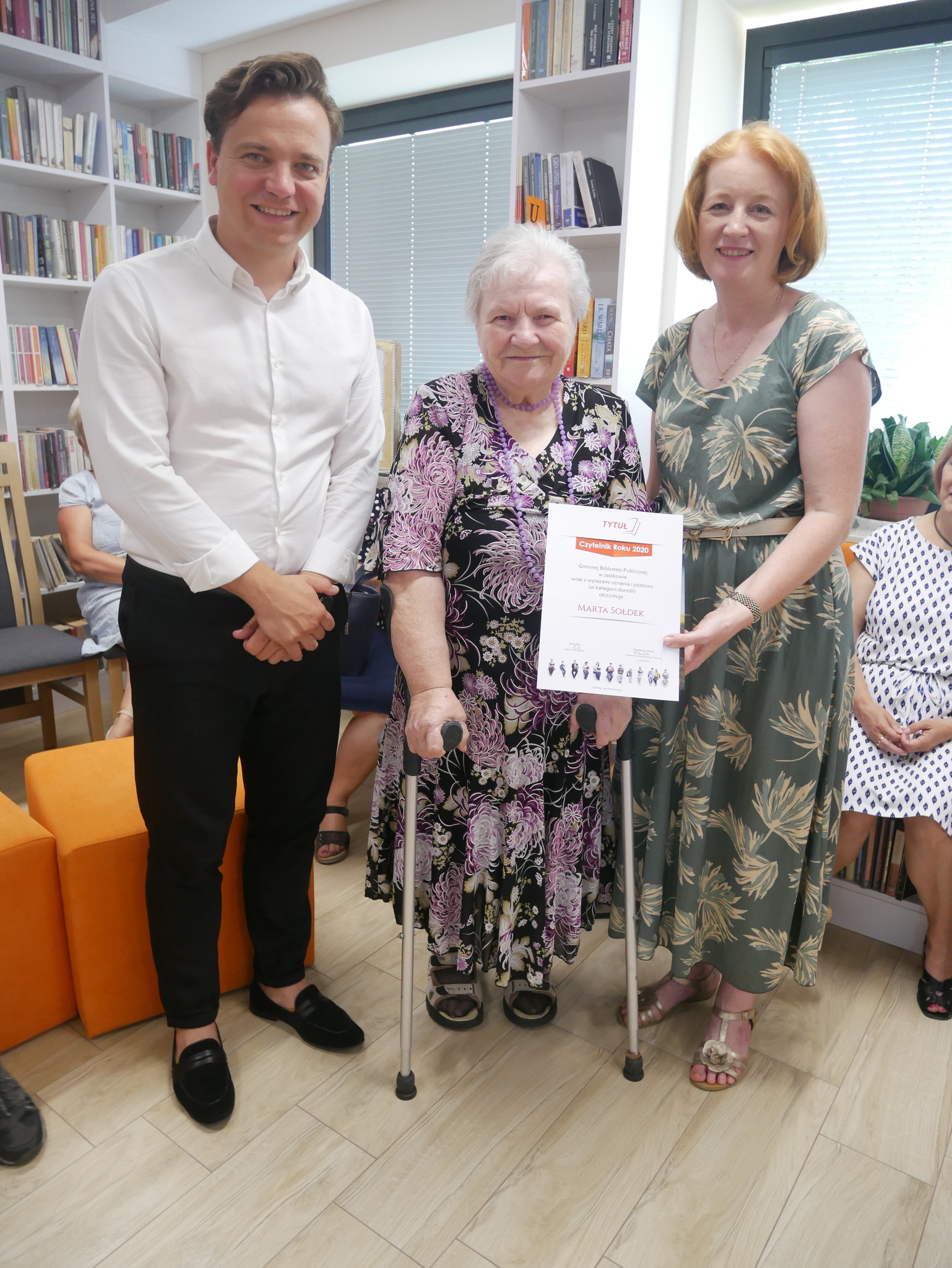 Czytelniczkami Roku 2020 w kategorii dzieci i młodzież zostały siostry: Gabrysia i Zuzia Jankowskie. Wyróżnieni również w tej kategorii zostali: Michał Chomicki, Antonina Konasiuk, Lidia Smęt, Kornelia Żelazny oraz Jakub Stachyra. Wśród dorosłych wyróżniliśmy naszych czytelników: Elżbietę Dekondy, Danutę Gawron, Agnieszkę Łazarz, Katarzynę Ostrowską oraz Janusza Grzelaka. Tytuł Czytelnik Roku 2020 w kategorii dorośli otrzymała pani Marta Sołdek, nestorka czteropokoleniowej rodziny naszych czytelników, przygodę z książkami niedawno rozpoczął prawnuk pani Marty – Aleksander!