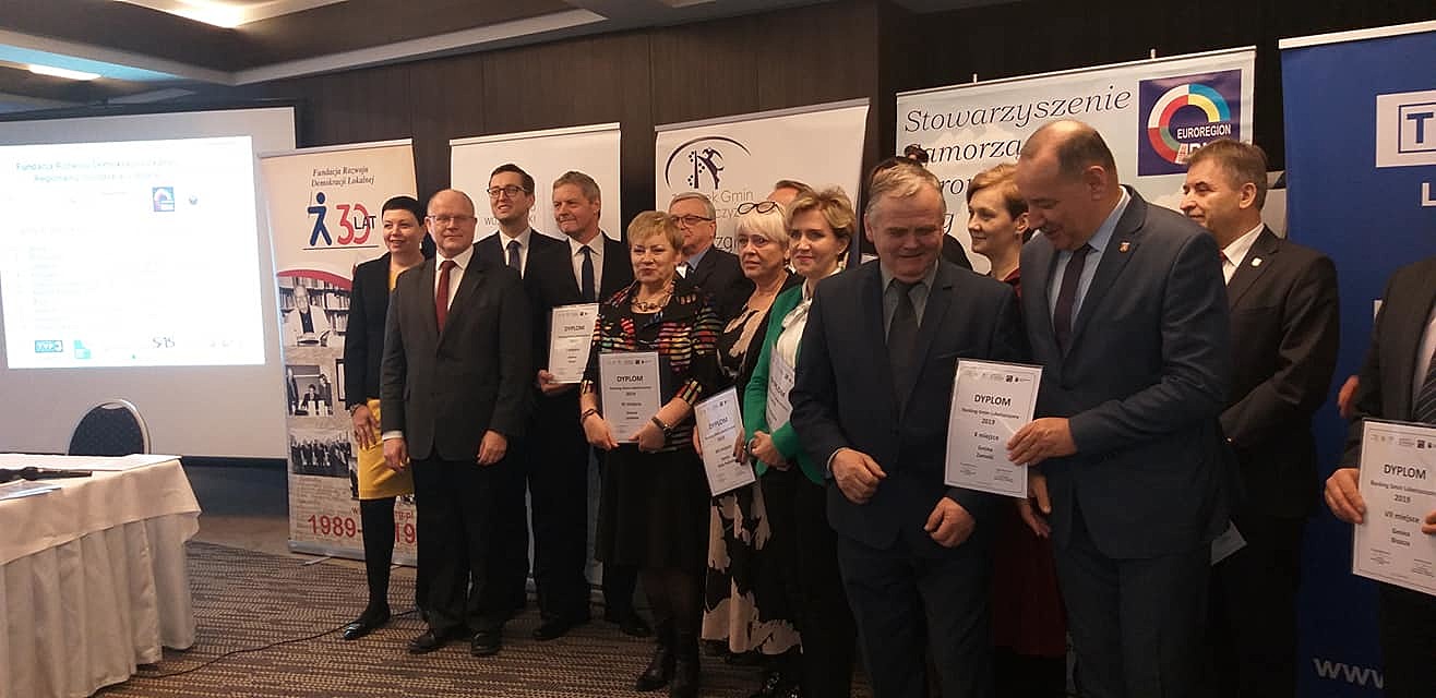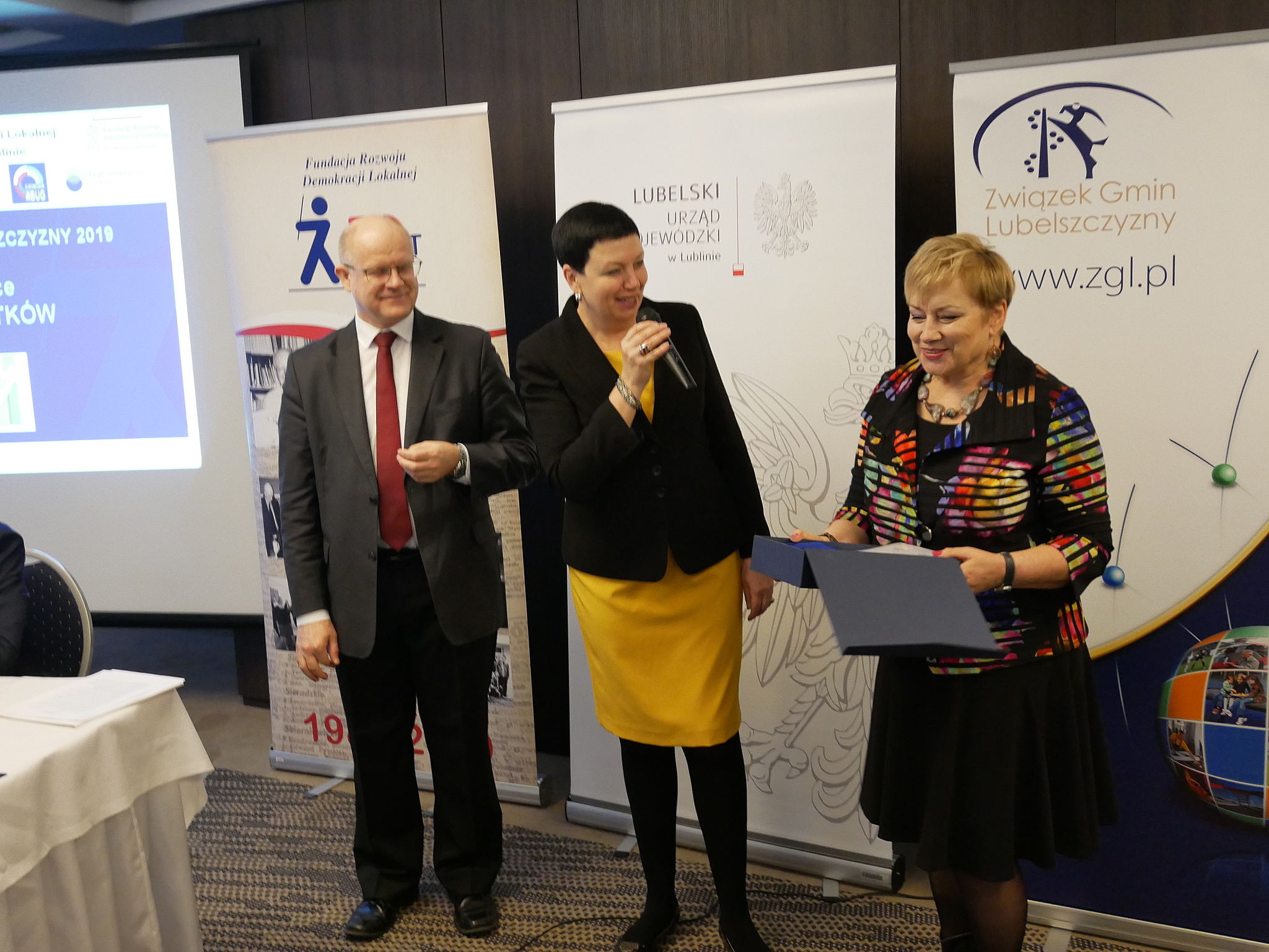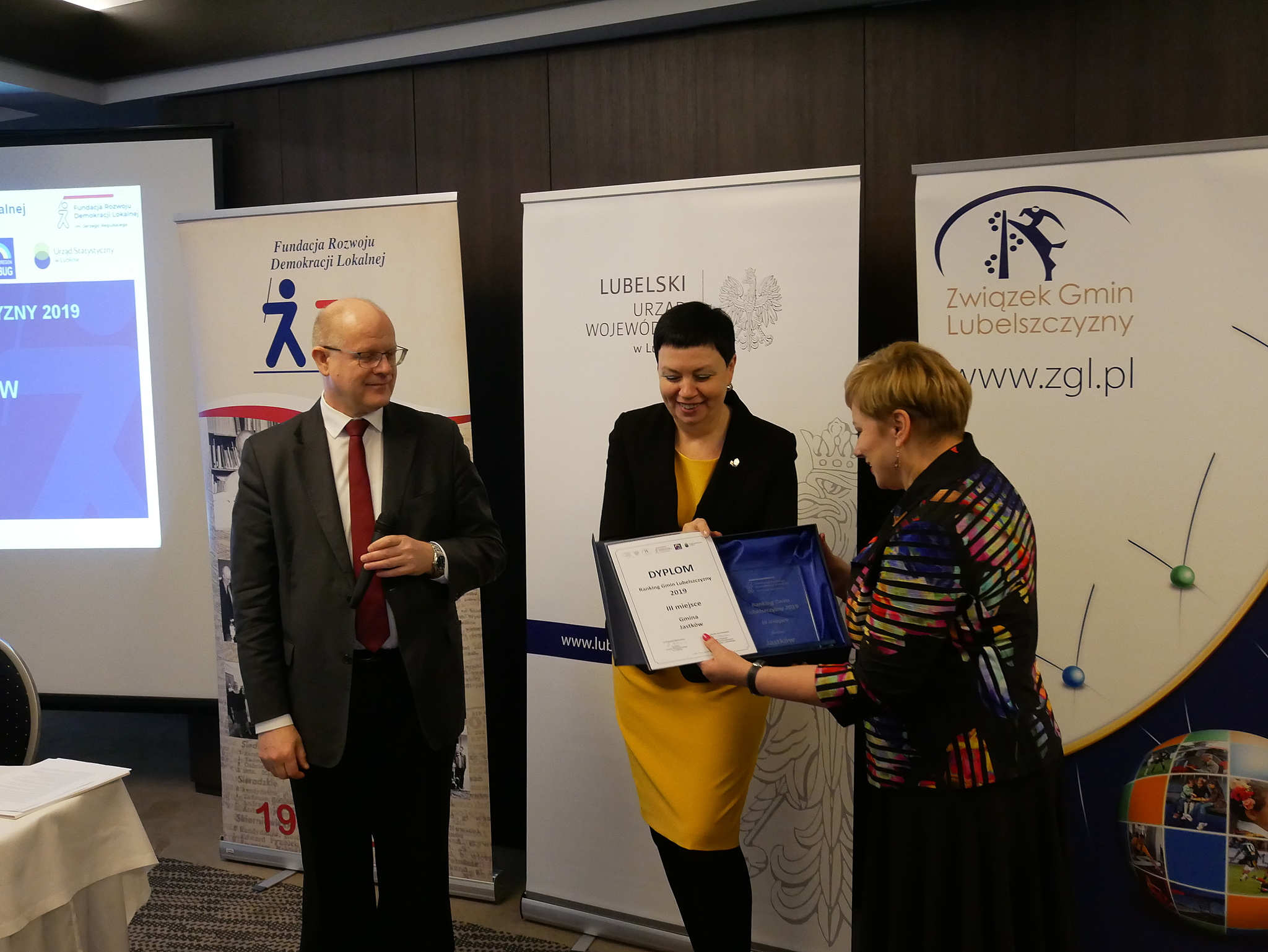 W dniu dzisiejszym – 5 grudnia 2019 r na uroczystej gali zorganizowanej podczas Forum Sekretarzy Lubelszczyzny i Podkarpacia w Janowie Lubelskim, zorganizowanej przez Fundację Rozwoju Demokracji Lokalnej Regionalny Ośrodek w Lublinie we współpracy z Urzędem Statystycznym, nastąpiło wręczenie wyróżnień dla 20 najlepszych gmin według Rankingu Gmin Lubelszczyzny. Pani Wójt Teresa Kot odebrała zaszczytne wyróżnienie dla Gminy Jastków, która uplasowała się w 2019 roku na 3 pozycji. W roku 2018 nasza gmina zajęła w tym samym rankingu miejsce 7 a w 2017 miejsce 10.
