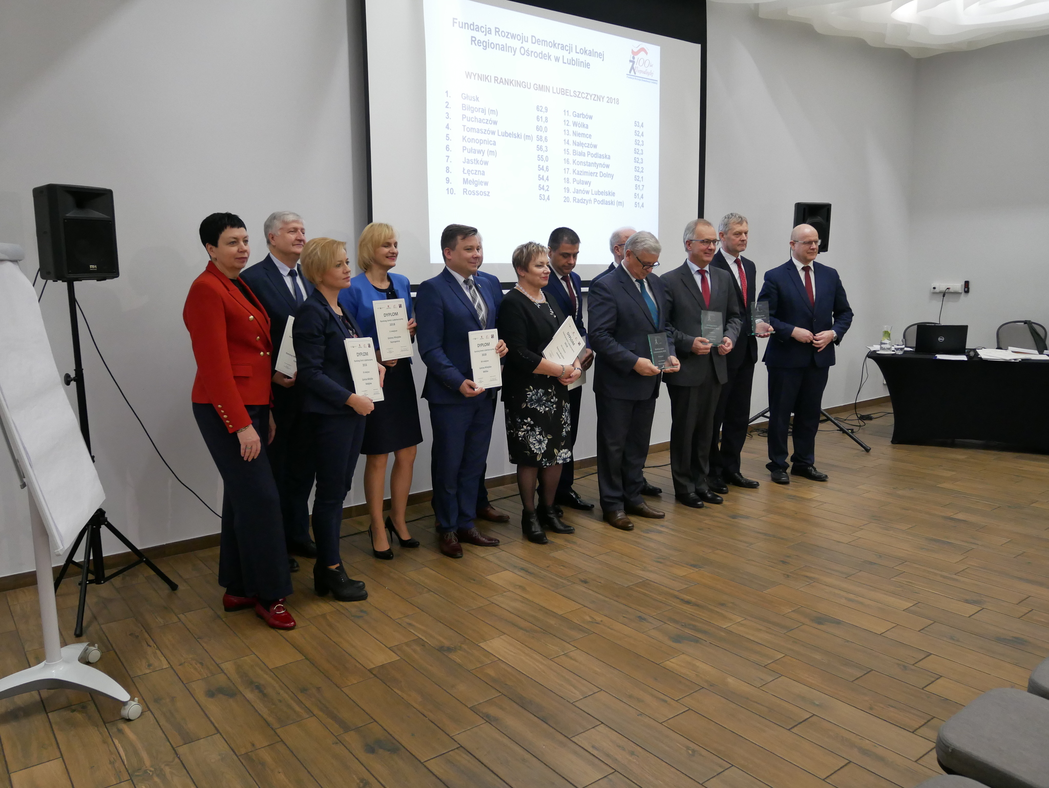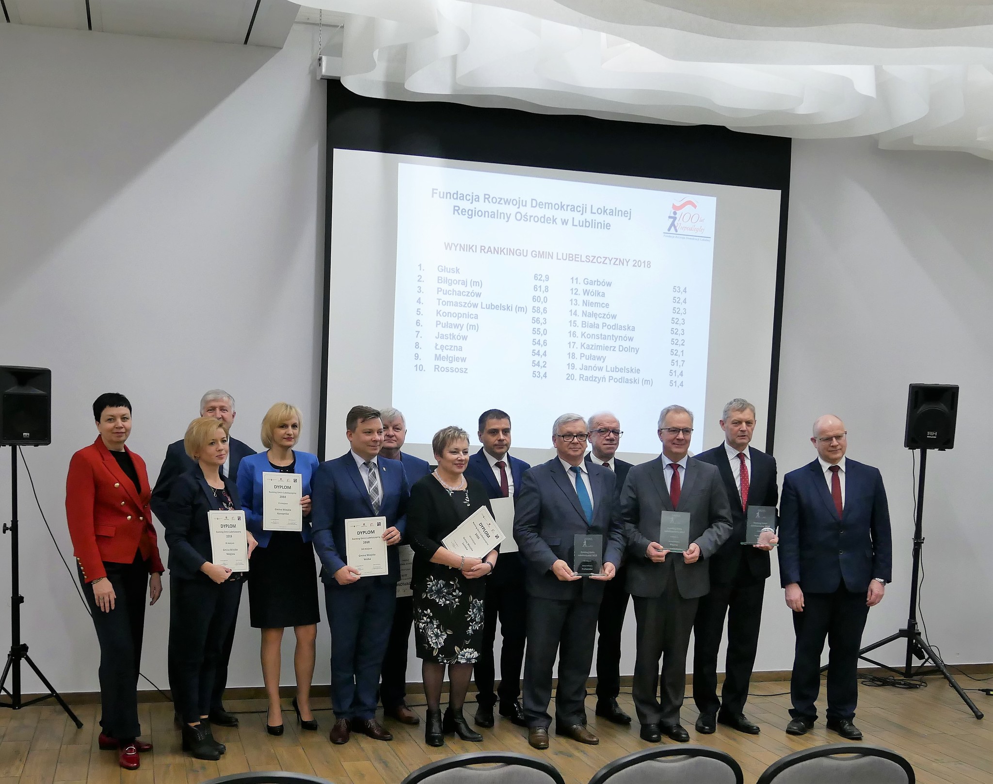 W dniu dzisiejszym – 6 grudnia 2018 r na uroczystej gali zorganizowanej przez Urząd Statystyczny w Lublinie oraz Fundacje Rozwoju Demokracji Lokalnej w hotelu inBeetwen, nastąpiło wręczenie wyróżnień dla 20 najlepszych gmin według Rankingu Gmin Lubelszczyzny. Pani Wójt Teresa Kot odebrała zaszczytne wyróżnienie dla Gminy Jastków, która uplasowała się w 2018 roku na 7 pozycji. W roku ubiegłym nasza gmina zajęła w tym samym rankingu miejsce 10.