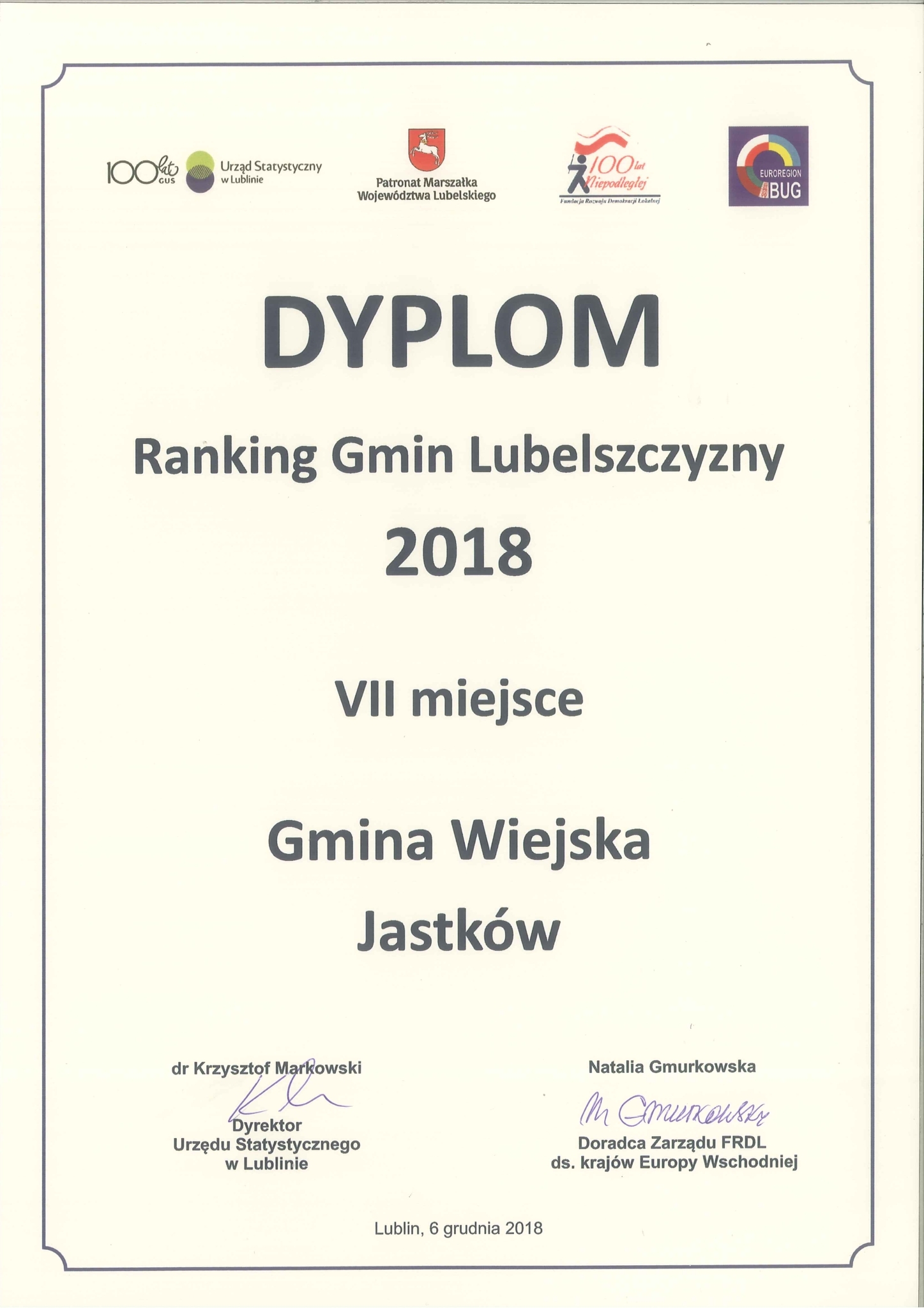 GMINA JASTKÓW -VII GMINĄ WEDŁUG RANKINGU GMIN LUBELSZCZYZNY