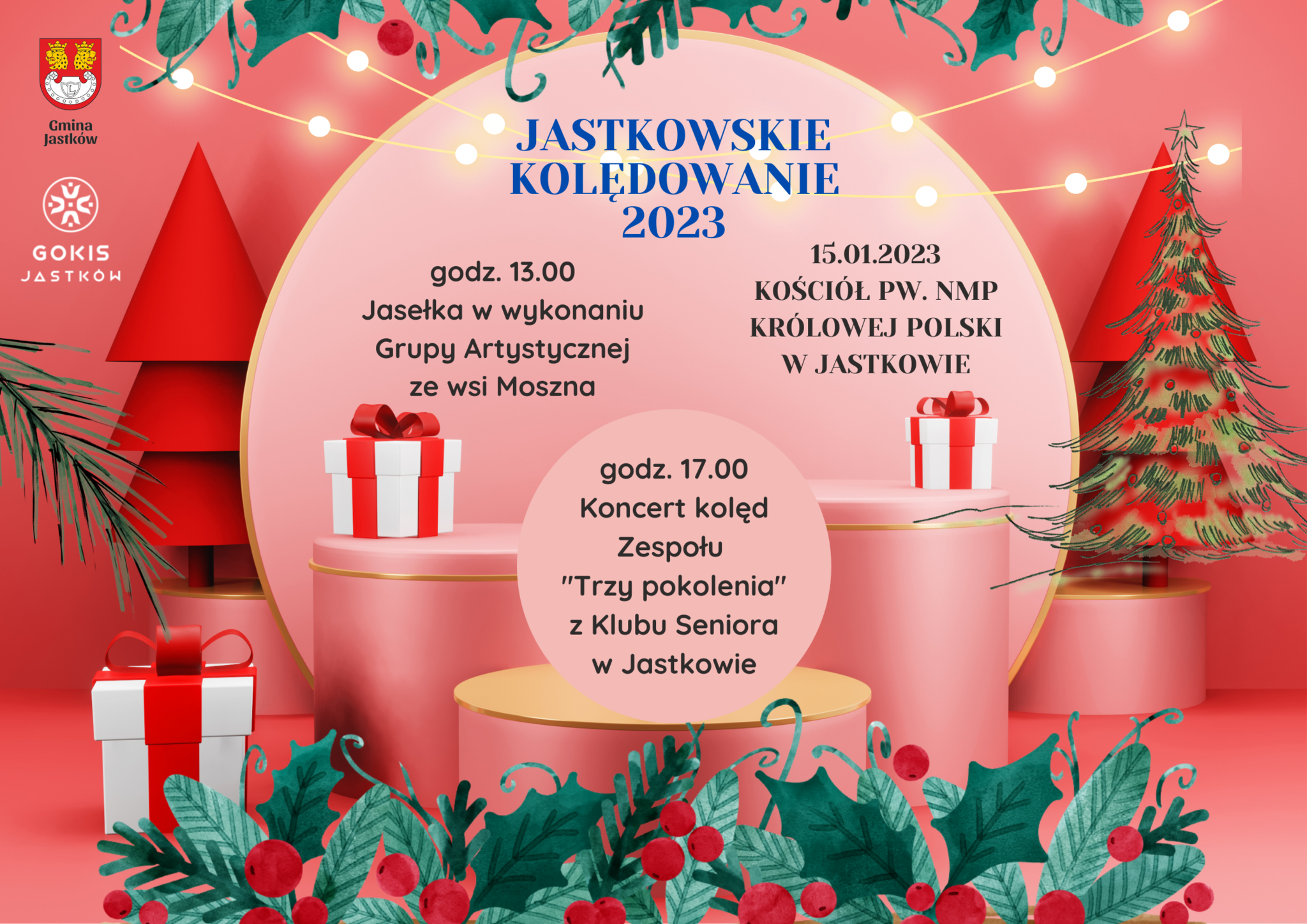 GMINNY OŚRODEK KULTURY I SPORTU ZAPRASZA NA JASTKOWSKIE KOLĘDOWANIE 2023