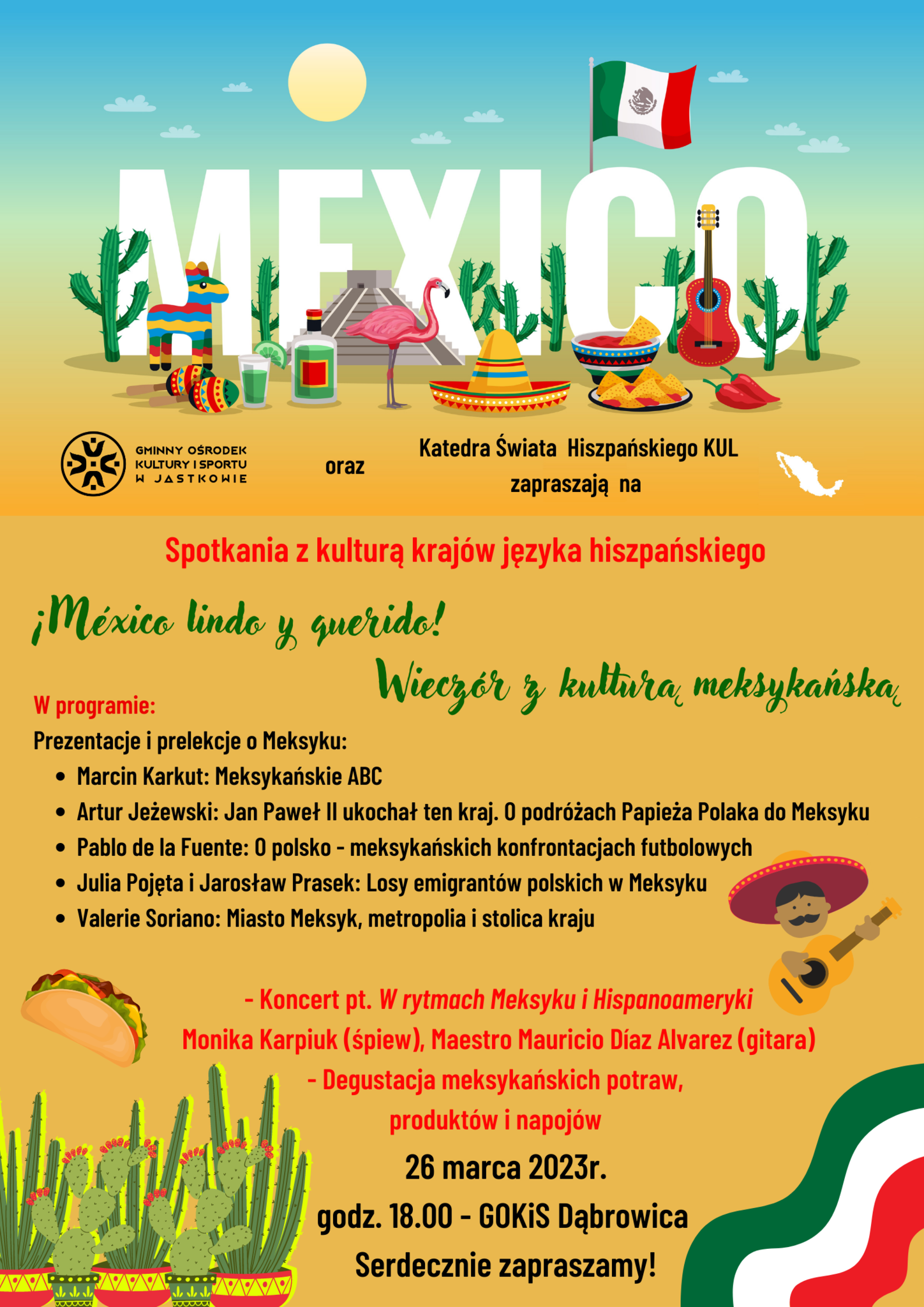 GMINNY OŚRODEK KULTURY I SPORTU ZAPRASZA SERDECZNIE NA WIECZÓR Z KULTURĄ MEKSYKAŃSKĄ. SZCZEGÓŁY NA PLAKACIE.
