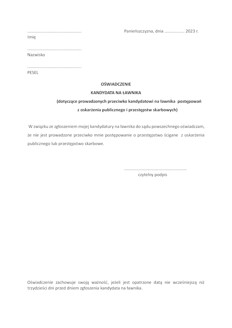 DO ZGŁOSZENIA KANDYDATA NA ŁAWNIKA DOKONANEGO NA KARCIE ZGŁOSZENIA DOŁĄCZA SIĘ NASTĘPUJĄCE DOKUMENTY: