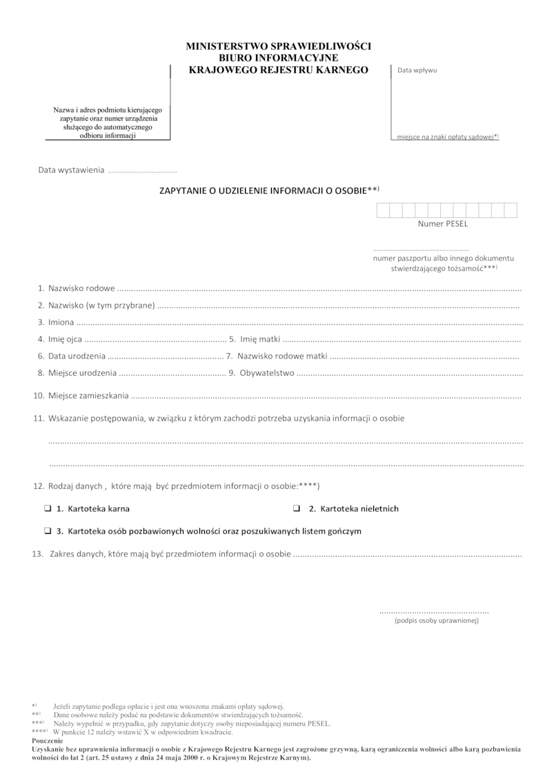 1) informację z Krajowego Rejestru Karnego dotyczącą zgłaszanej osoby;
