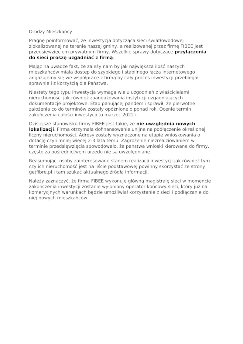 INFORMACJA O ŚWIATŁOWODZIE
