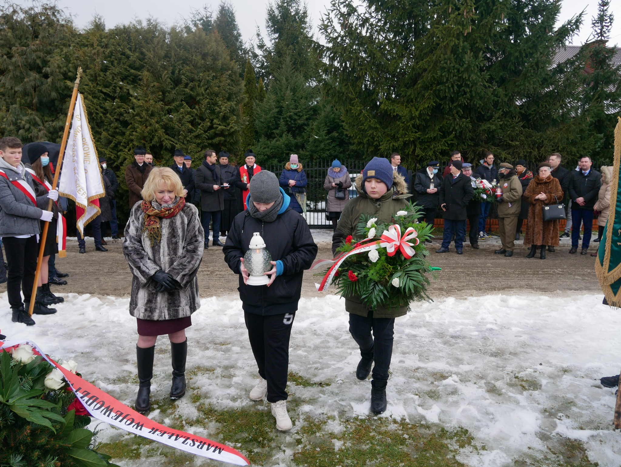 Uroczystości rocznicowe rozpoczęła Msza Święta odprawiona w intencji poległych w Kościele p.w. św. Stanisława BM na ul. Zbożowej. Po mszy przedstawiciele rządu, władz samorządowych, środowisk kombatanckich i społeczności lokalnej udali się pod pomnik na ul. Szarugi w Marysinie oraz do miejsca pamięci przy SP w Snopkowie w celu złożenia wieńców i zniczy. W uroczystości uczestniczył Minister edukacji i nauki pan Przemysław Czarnek.