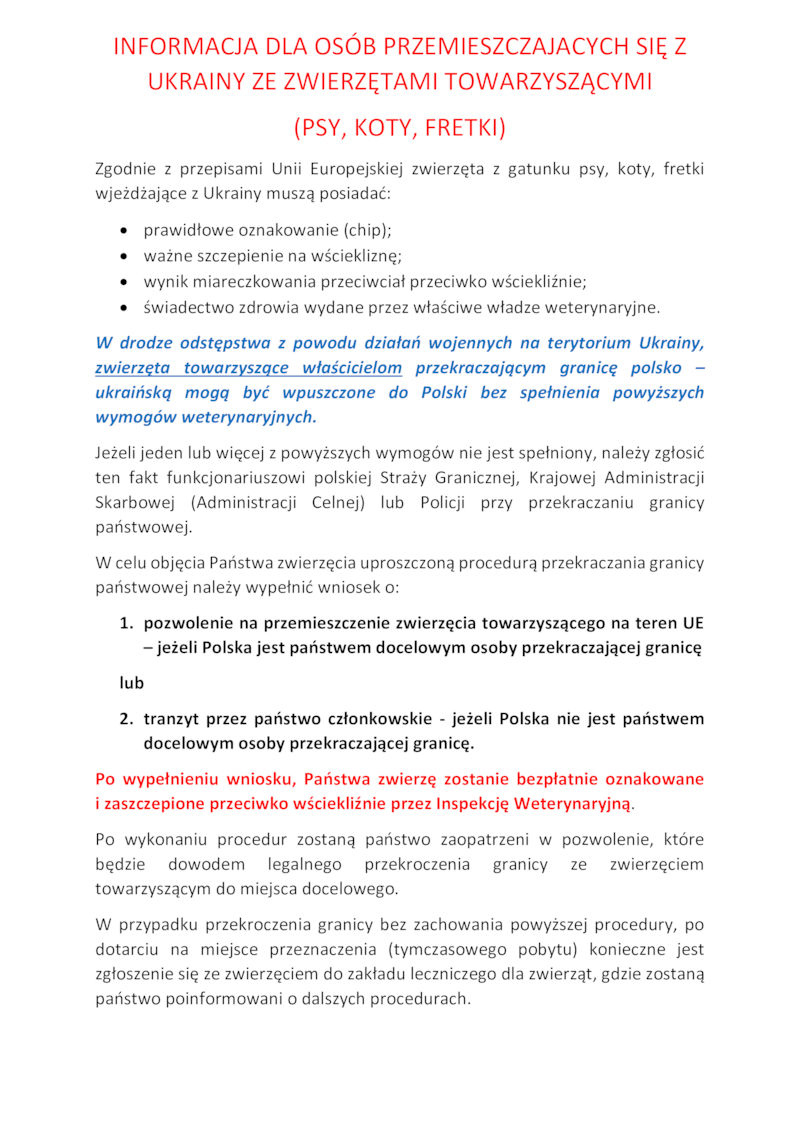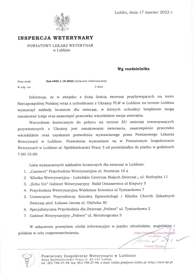 KOMUNIKAT POWIATOWEGO LEKARZA WETERYNARII W LUBLINIE