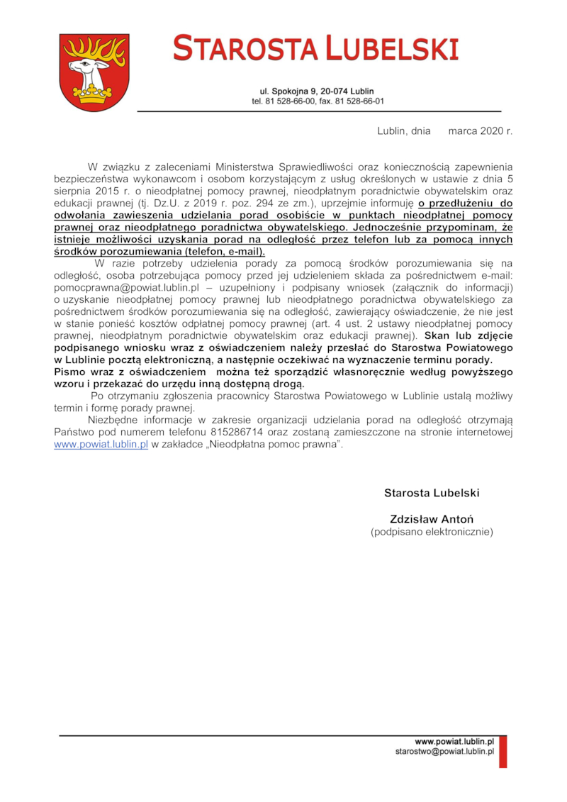KOMUNIKAT STAROSTY LUBELSKIEGO