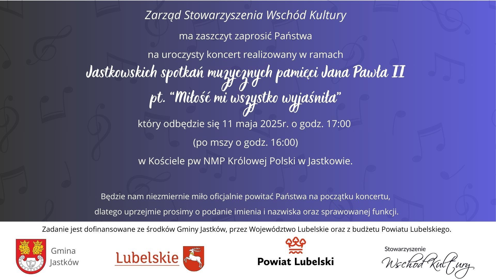 Niech to spotkanie stanie się piękną okazją do refleksji i wspólnego przeżywania muzyki inspirowanej nauczaniem Jana Pawła II. Serdecznie zapraszamy!