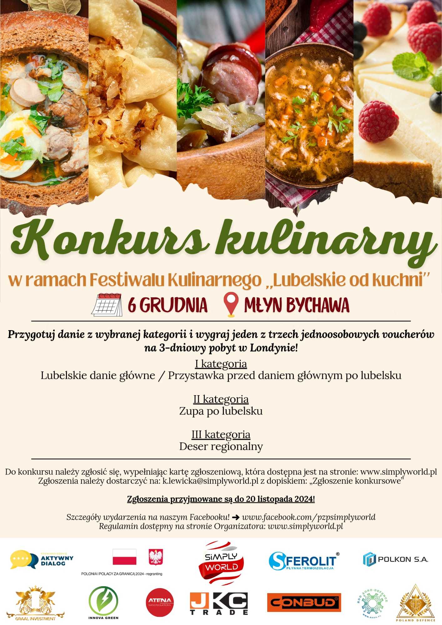 Zapraszamy do udziału w konkursach kulinarnych organizowanych podczas Festiwalu Kulinarnego „Lubelskie od kuchni” organizowanych przez Polonijny Związek Pracodawców „Simply World”