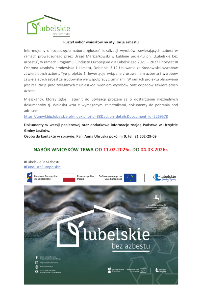 NABÓR WNIOSKÓW NA UTYLIZACJĘ AZBESTU