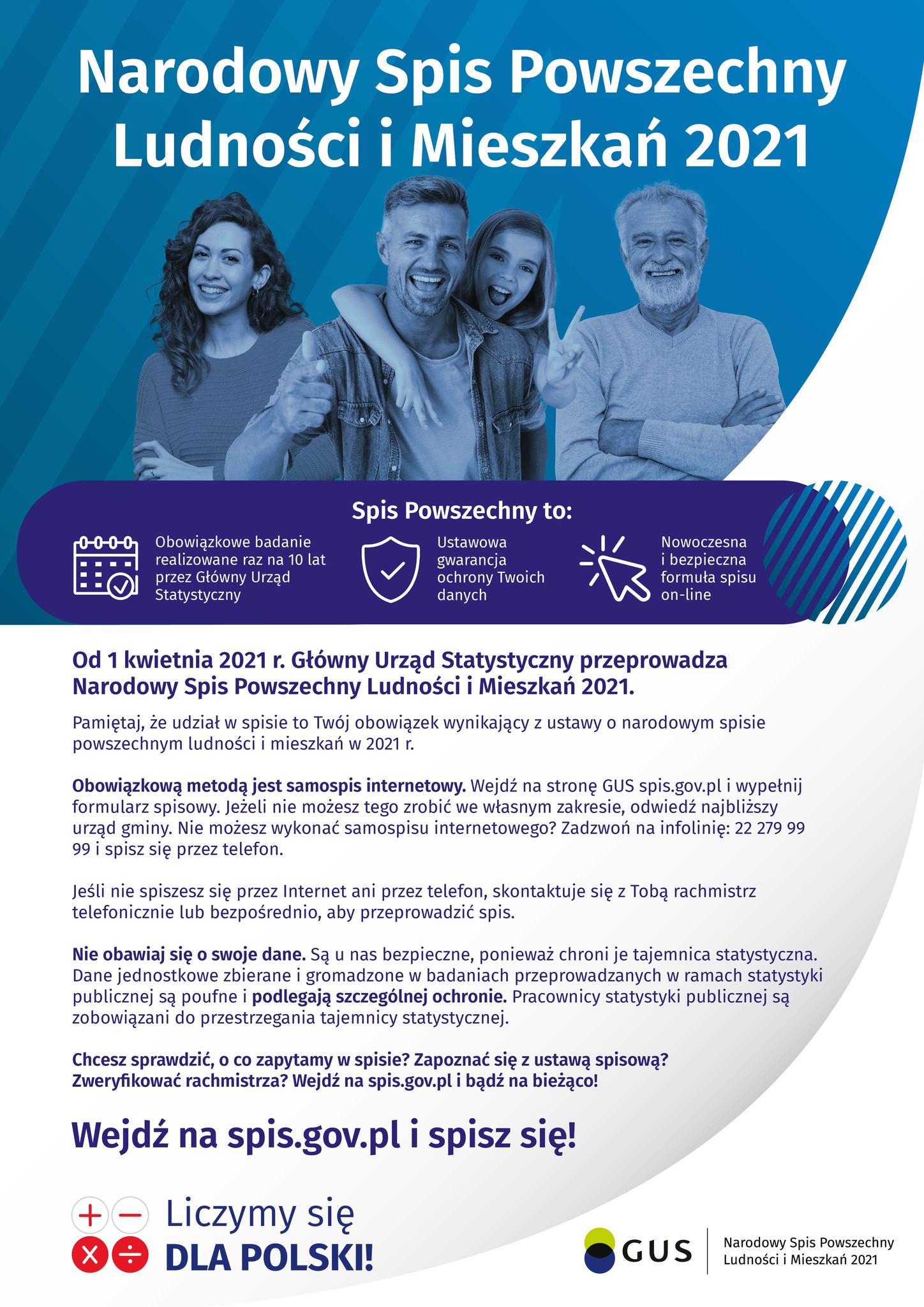Więcej informacji o spisie można znaleźć na stronie dedykowanej Narodowemu Spisowi Powszechnemu Ludności i Mieszkań 2021: spis.gov.pl.