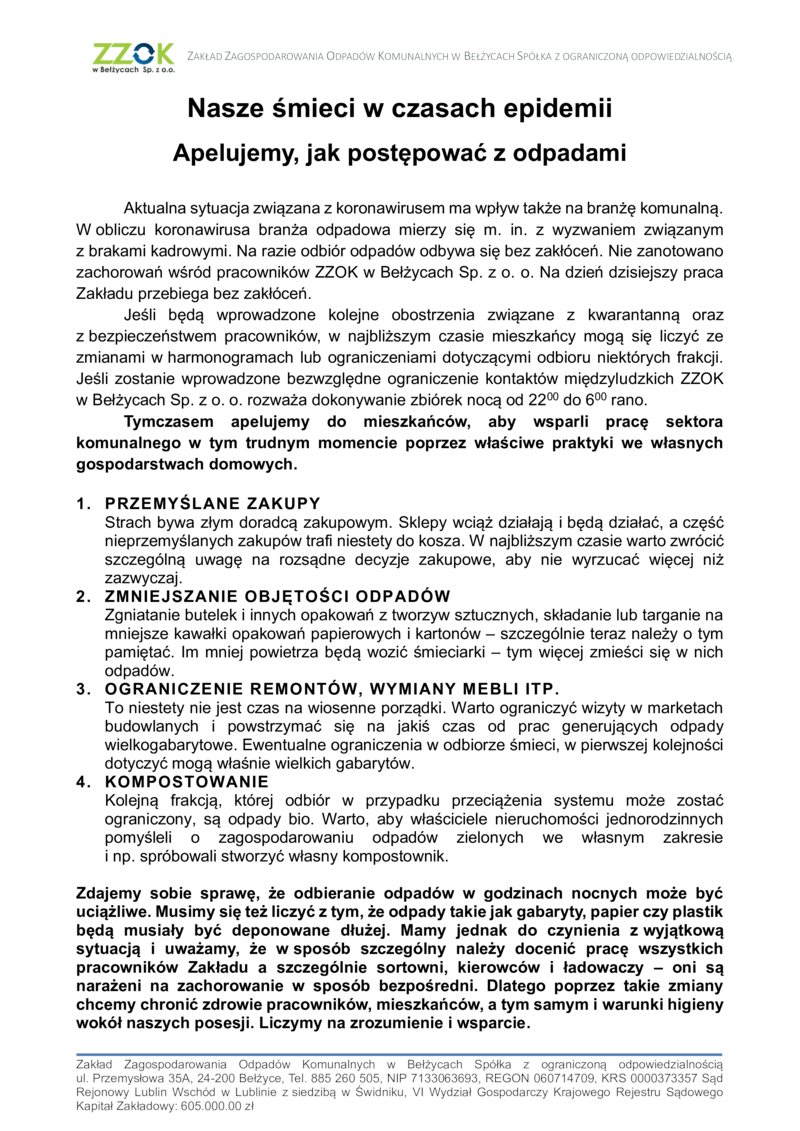 NASZE ŚMIECI W CZASACH EPIDEMII - APELUJEMY, JAK POSTĘPOWAĆ Z ODPADAMI