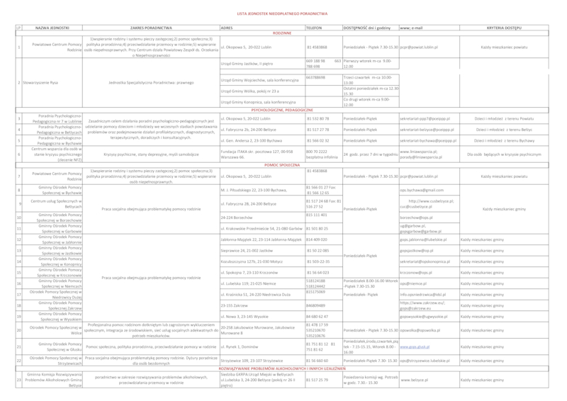 1. Lista jednostek poradnictwa prawnego 17 wrz 2024 — 212 KB