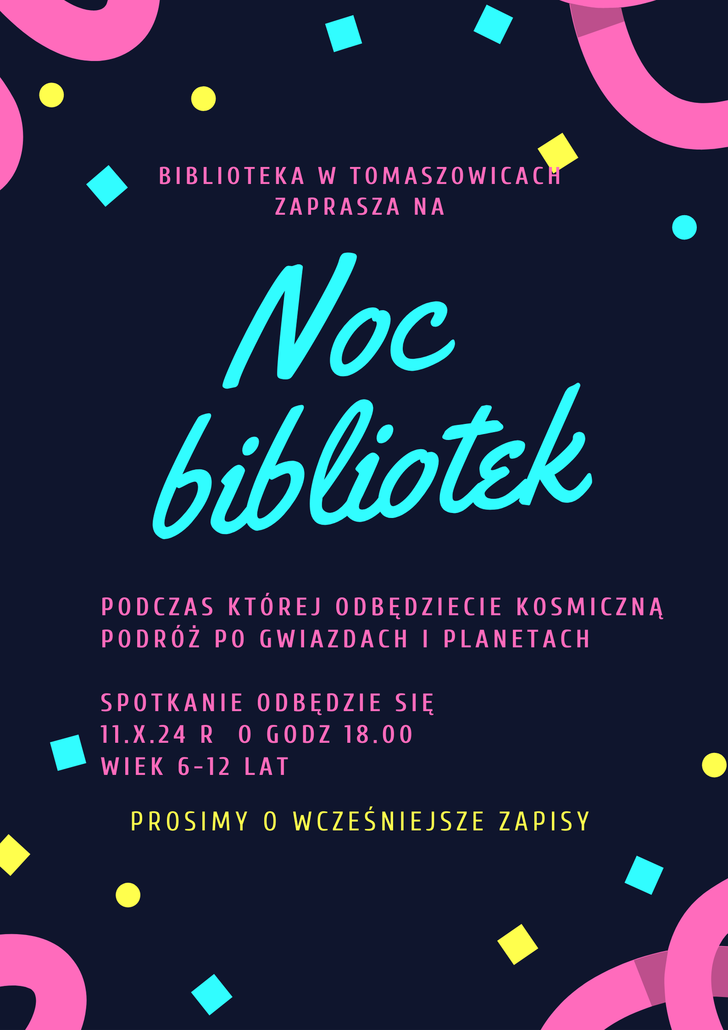 Biblioteka w Tomaszowicach zaprasza na Noc Bibliotek, podczas której odbędziecie kosmiczną podróż po gwiazdach i planetach!
