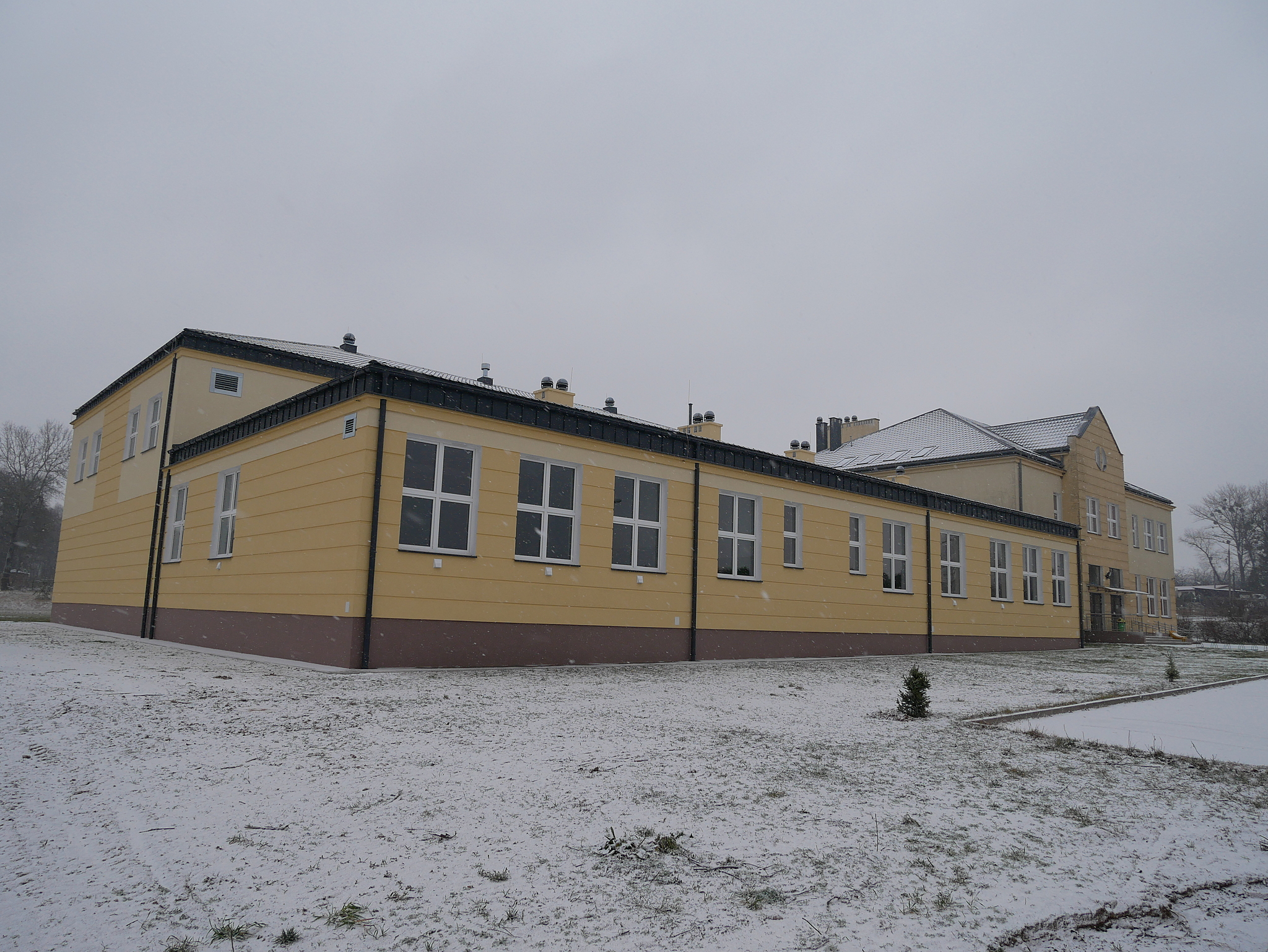 Budynek składa się z 2 części: pierwszej - przeznaczonej na salę gimnastyczną o wymiarach