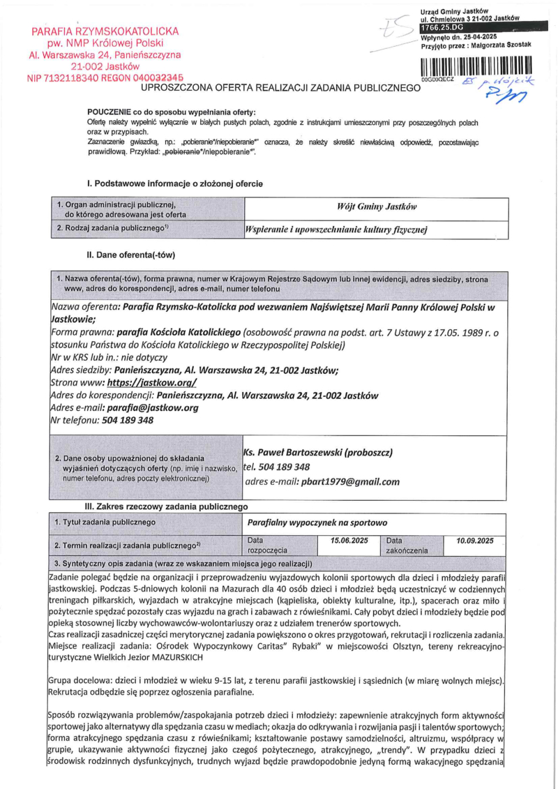 OFERTA REALIZACJI ZADANIA PUBLICZNEGO