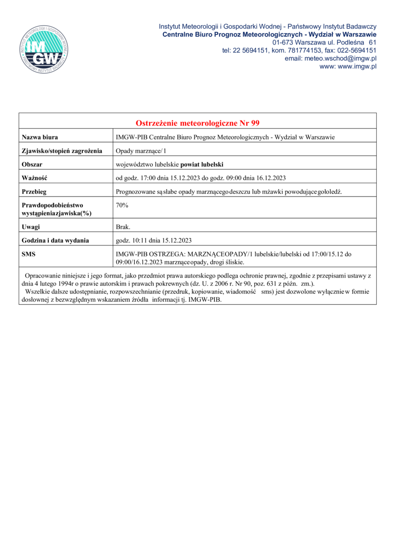 OSTRZEŻENIE METEOROLOGICZNE