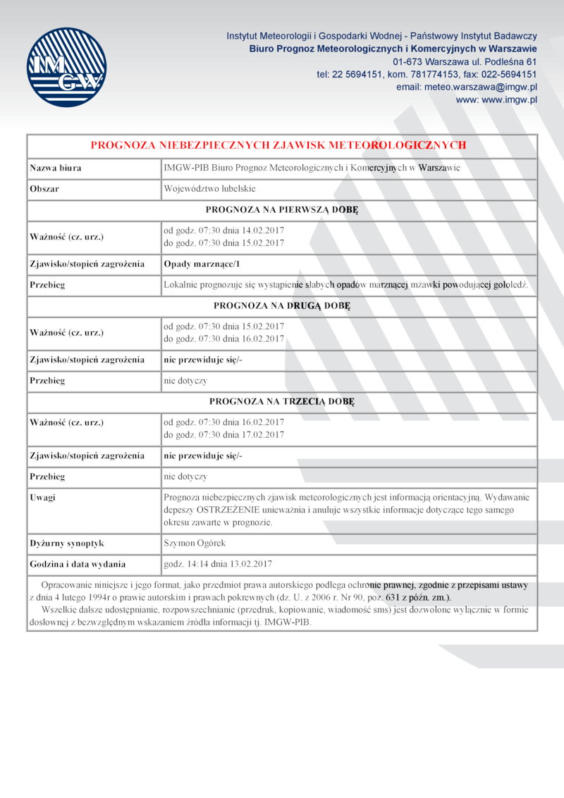 OSTRZEŻENIE O OPADACH MARZNĄCYCH