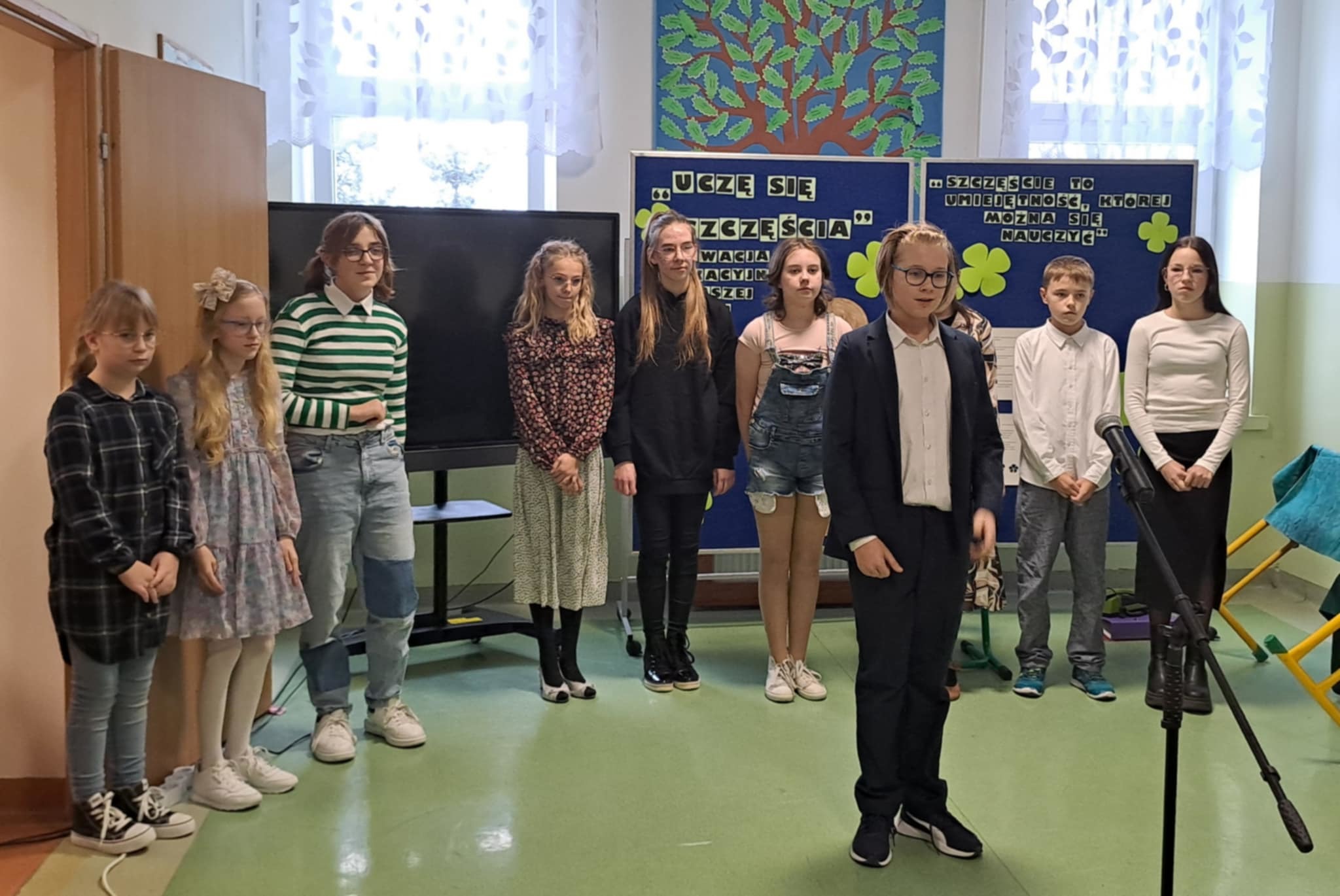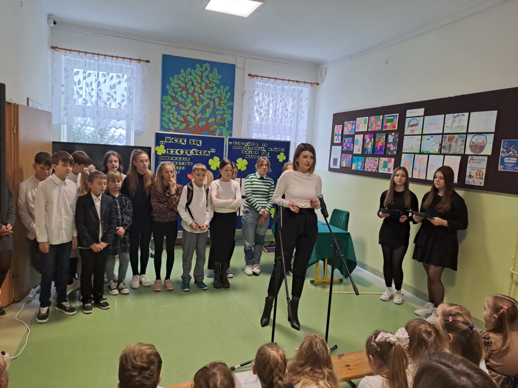 Przedstawiono cele, założenia oraz główne zadania przedsięwzięcia, a program artystyczny nawiązywał do wartości takich jak radość, humor i rozwijanie pasji. Uroczystość uświetnił krótki koncert ucznia, Konrada Adamczyka, uczestnika programu „Szansa na sukces”. Kulminacyjnym punktem uroczystości było symboliczne posadzenie „Drzewka Szczęścia” w szkolnym ogrodzie. Pod jego korzeniami umieszczone zostały kartki z przesłaniami uczniów – ich marzeniami, nadziejami i wartościami, które są dla nich ważne. Drzewko stanie się trwałym symbolem tej innowacji i będzie przypominać, że szczęście to umiejętność, której możemy się uczyć.
