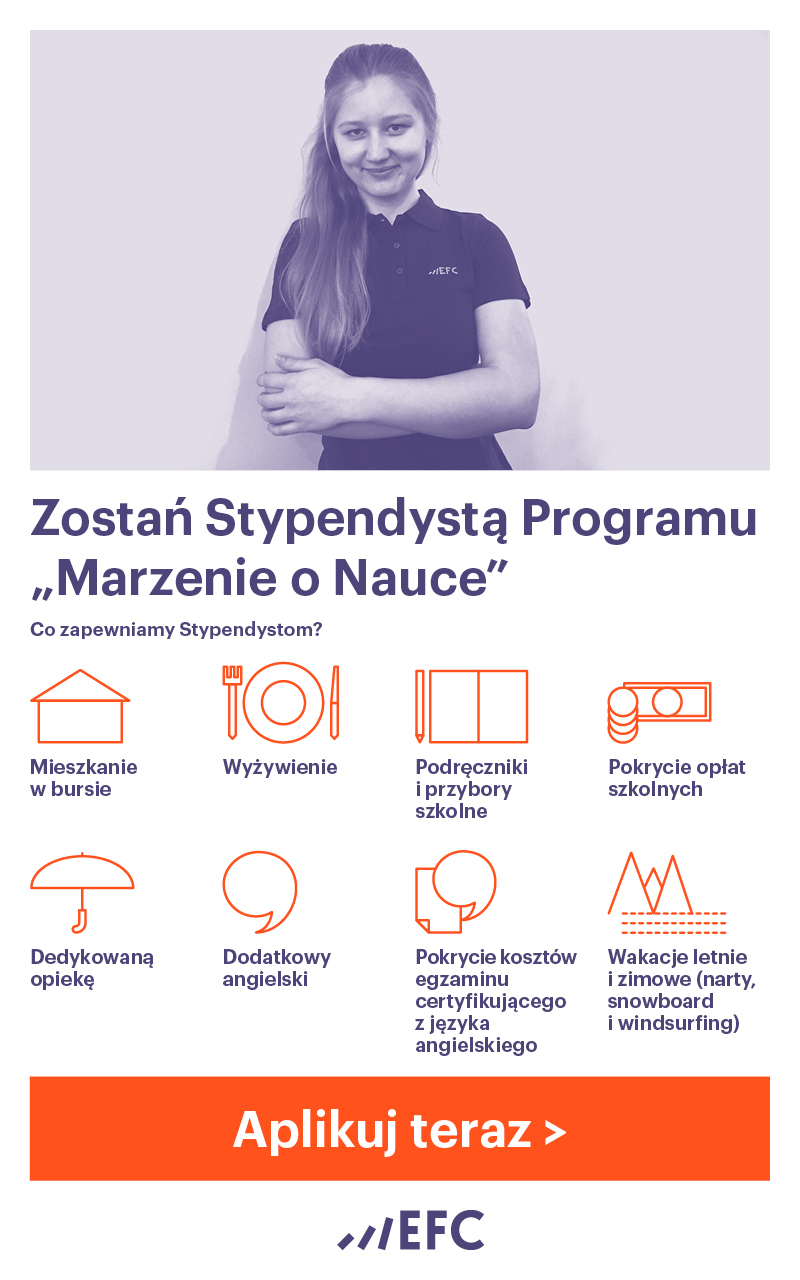 15 lutego Edukacyjna Fundacja im. prof. Romana Czerneckiego EFC rozpocznie rekrutację do siódmej edycji programu stypendialnego „Marzenie o Nauce”. Wnioskiem zgłoszeniowym I fazy rekrutacji jest wyłącznie formularz on-line wysłany przez Kandydata w terminie od 15 lutego do 31 marca 2017 roku za pośrednictwem strony ww.efc.edu.pl. Wyniki I fazy zostaną ogłoszone 13 kwietnia 2017 roku. Osoby zakwalifikowane otrzymają informację drogą mailową. Wybranych kandydatów odwiedzą osobiście w miejscu zamieszkania Koordynatorzy regionalni. Ostateczne wyniki rekrutacji zostaną opublikowane na stronie internetowej Fundacji 14 czerwca 2017 roku.