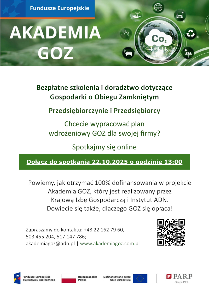 PROJEKT AKADEMIA GOZ, KTÓRY JEST REALIZOWANY PRZEZ KRAJOWĄ IZBĘ GOSPODARCZĄ ORAZ INSTYTUT ADN SP. Z O.O. SP. K. NUMER PROJEKTU: FERS.01.03-IP.09-0086/23