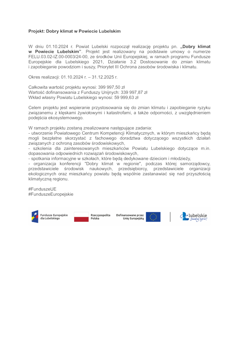 PROJEKT: DOBRY KLIMAT W POWIECIE LUBELSKIM