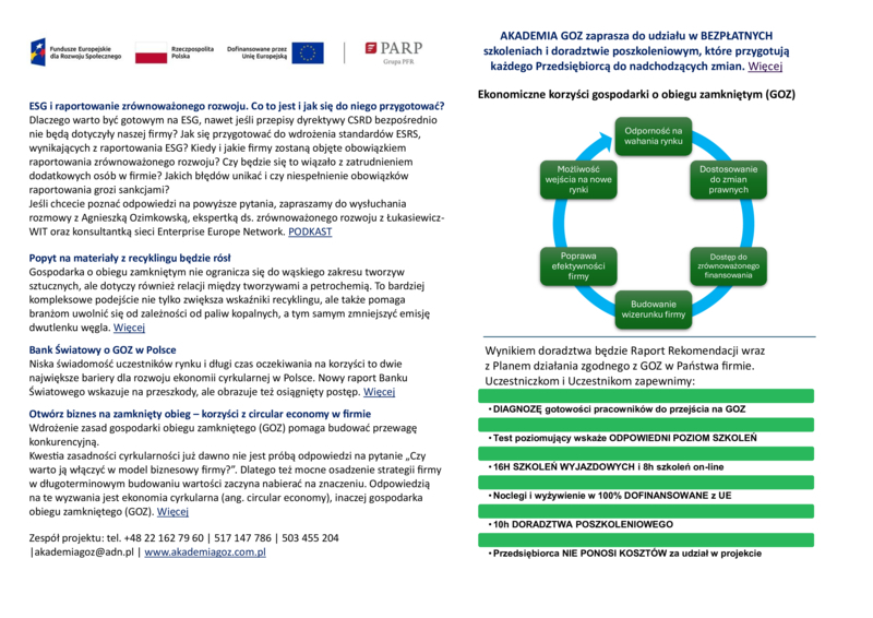 PROJEKT NR FERS.01.03-IP.09-0086/23 BEZPŁATNE SZKOLENIA I DORADZTWO Z TEMATYKI GOSPODARKI O OBIEGU ZAMKNIĘTYM