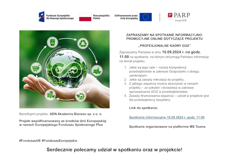 Celem projektu jest rozwój kompetencji dotyczących zielonej ekonomii w zakresie nisko i zero emisyjności oraz gospodarki o obiegu zamkniętym.