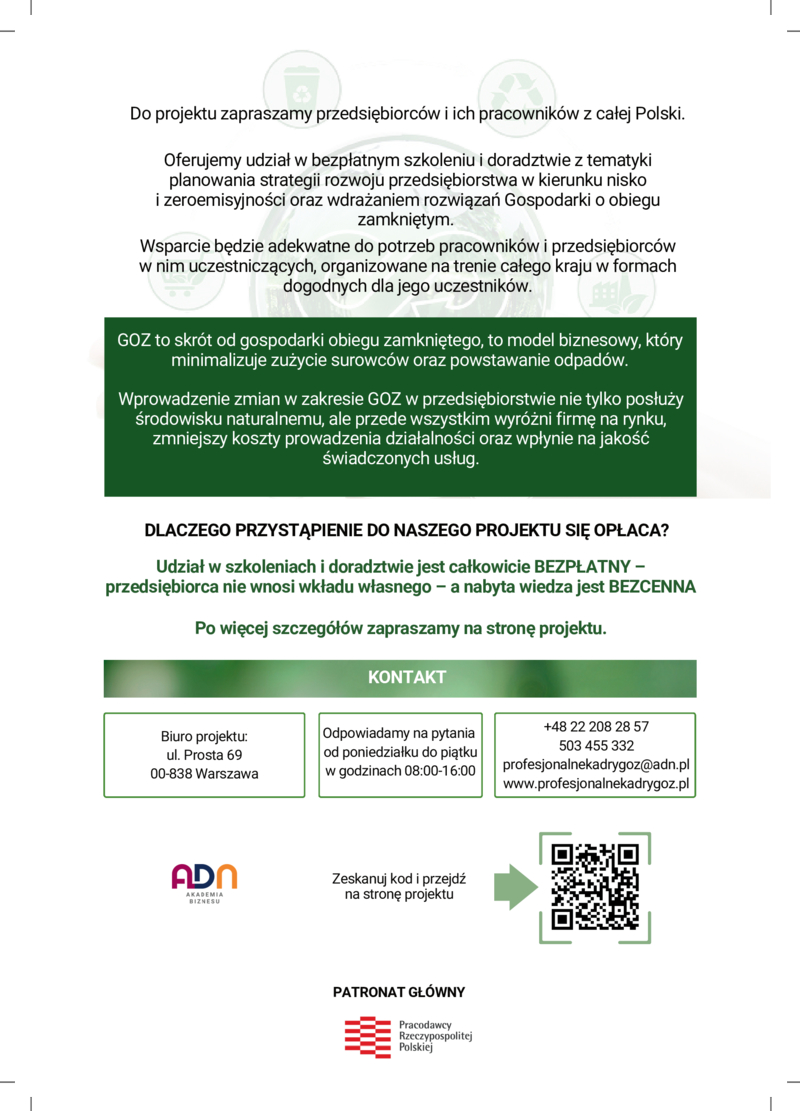 Szczegółowe informacje na temat projektu dostępne są na stronie internetowej https://profesjonalnekadrygoz.pl/