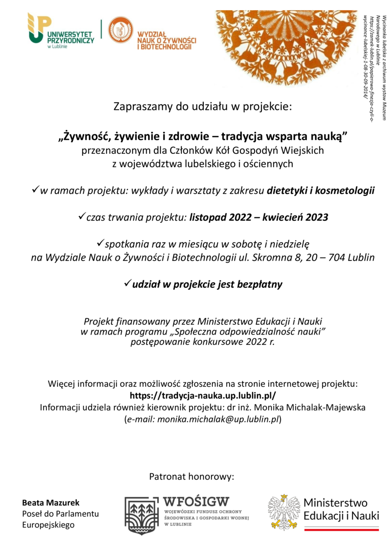 PROJEKT „ŻYWNOŚĆ, ŻYWIENIE I ZDROWIE – TRADYCJA WSPARTA NAUKĄ”