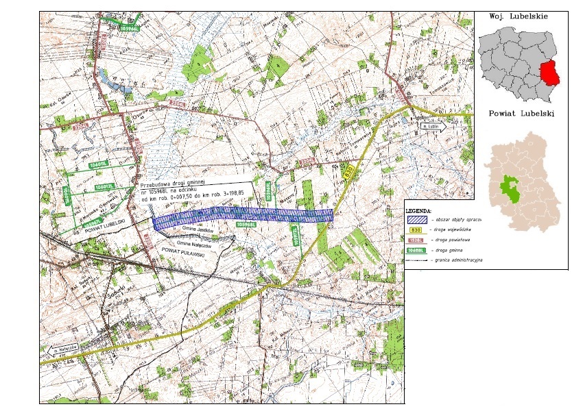 Przebudowa wyżej wymienionego odcinka drogi gminnej nr 105968L swoim zakresem obejmuje: