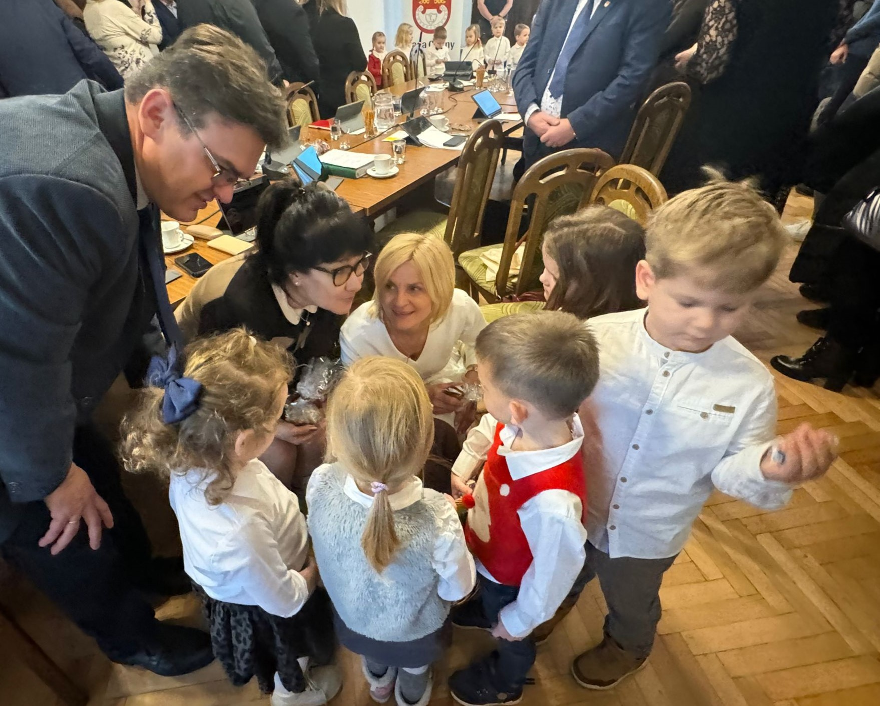 W magicznej atmosferze sesji mieliśmy przyjemność gościć dzieci z grupy „Żabek” z Przedszkola Samorządowego w Jastkowie. Mali artyści zachwycili nas pięknym wykonaniem kolęd, wierszyków i świątecznych piosenek, wprowadzając nas w prawdziwie bożonarodzeniowy nastrój. Obdarowali nas własnoręcznie przygotowanymi pierniczkami, które były słodkim dopełnieniem tego dnia. 🍪🎅
