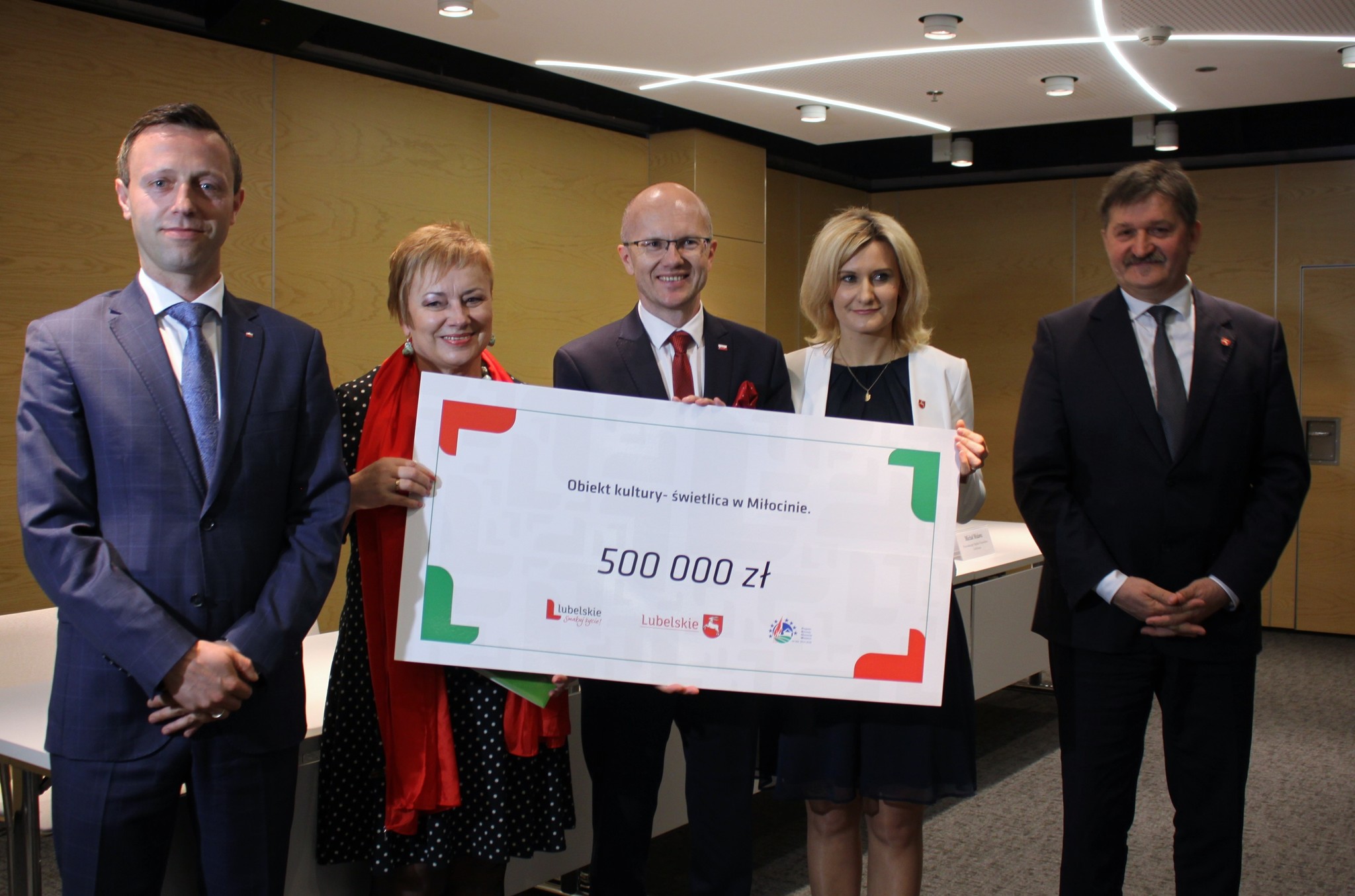 19 maja w Lubelskim Centrum Konferencyjnym odbyło się uroczyste wręczenie umów na dofinansowanie z środków pochodzących z Programu Rozwojów Obszarów Wiejskich na lata 2014 – 2020. Wójt Gminy Jastków pani Teresa Kot odebrała umowę na dofinansowanie w kwocie 500 000 zł. do budowy Świetlicy Wiejskiej w Miłocinie.  Planowane zakończenie inwestycji to połowa 2020 roku, zaś jej całkowity koszt opiewa na kwotę 945 870 zł.